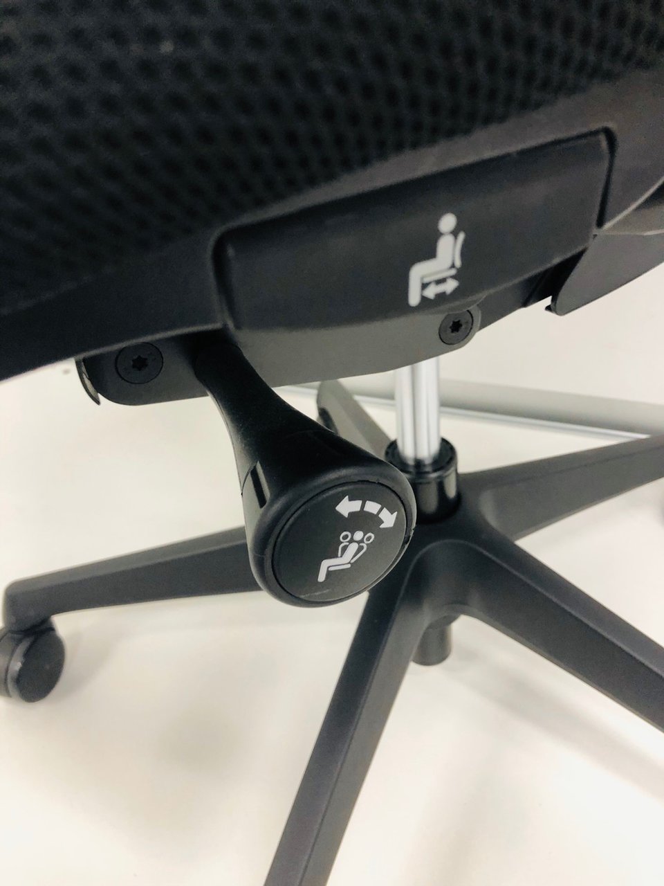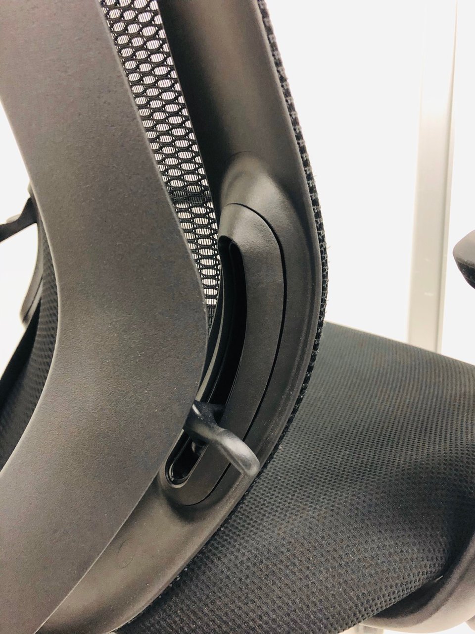- 座面右下のダイヤル操作で、リクライニングの強弱調整が行えます。これまでのダイヤル式よりも、少ない回転数で、最弱?最強の調整が可能です。
