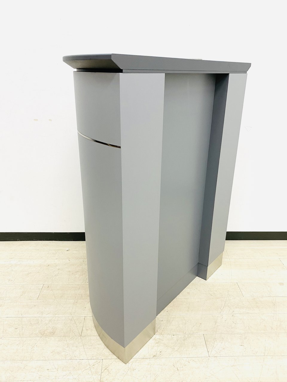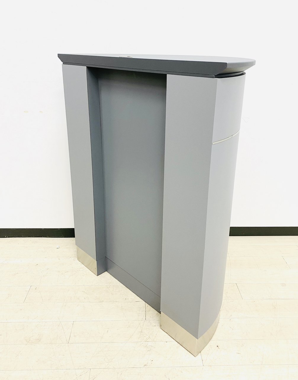 人気の受付カウンター入荷!(演台)グレーで落ち着きがあり、さまざまな壁色にもあいます!限定1台のオススメ品です!!- つくば店