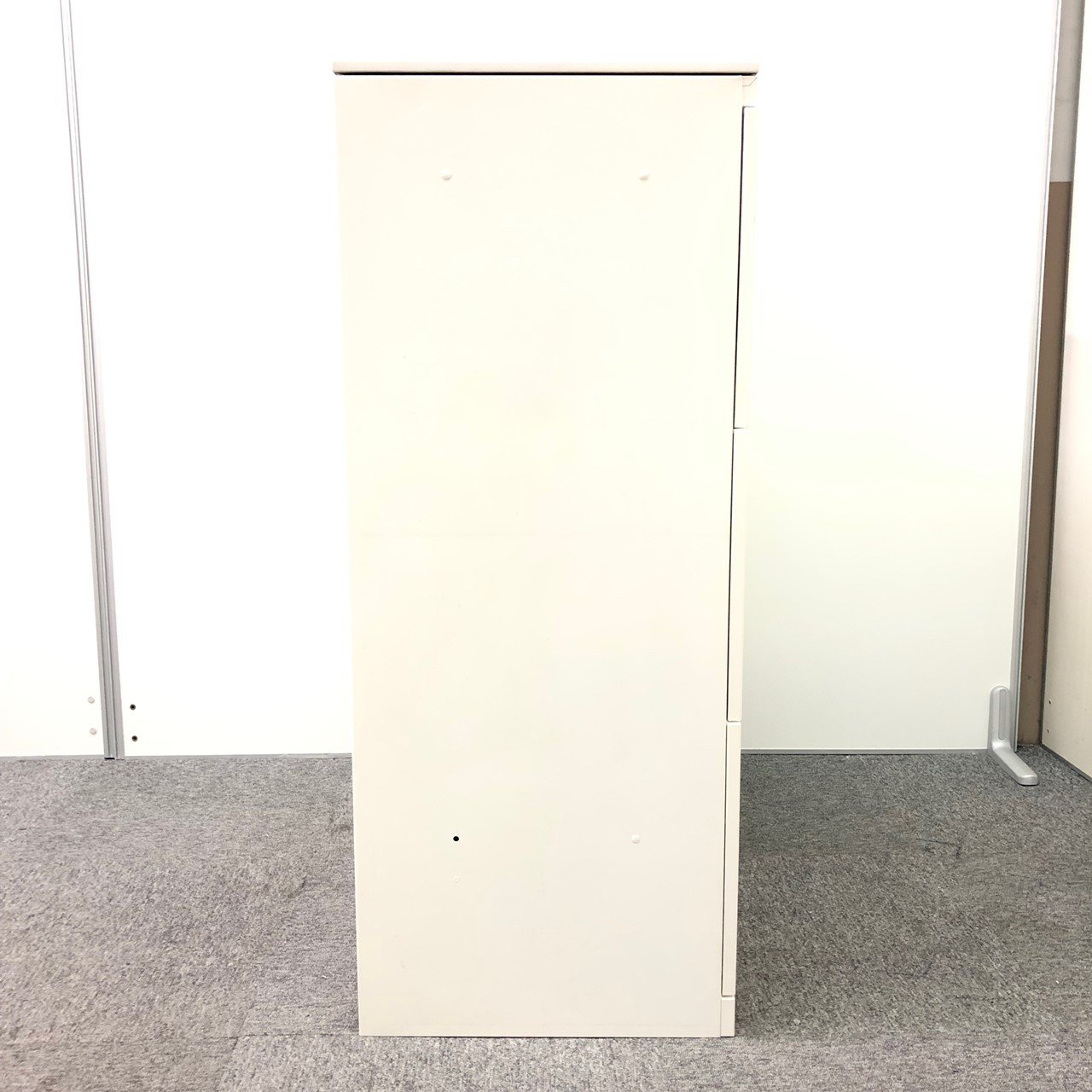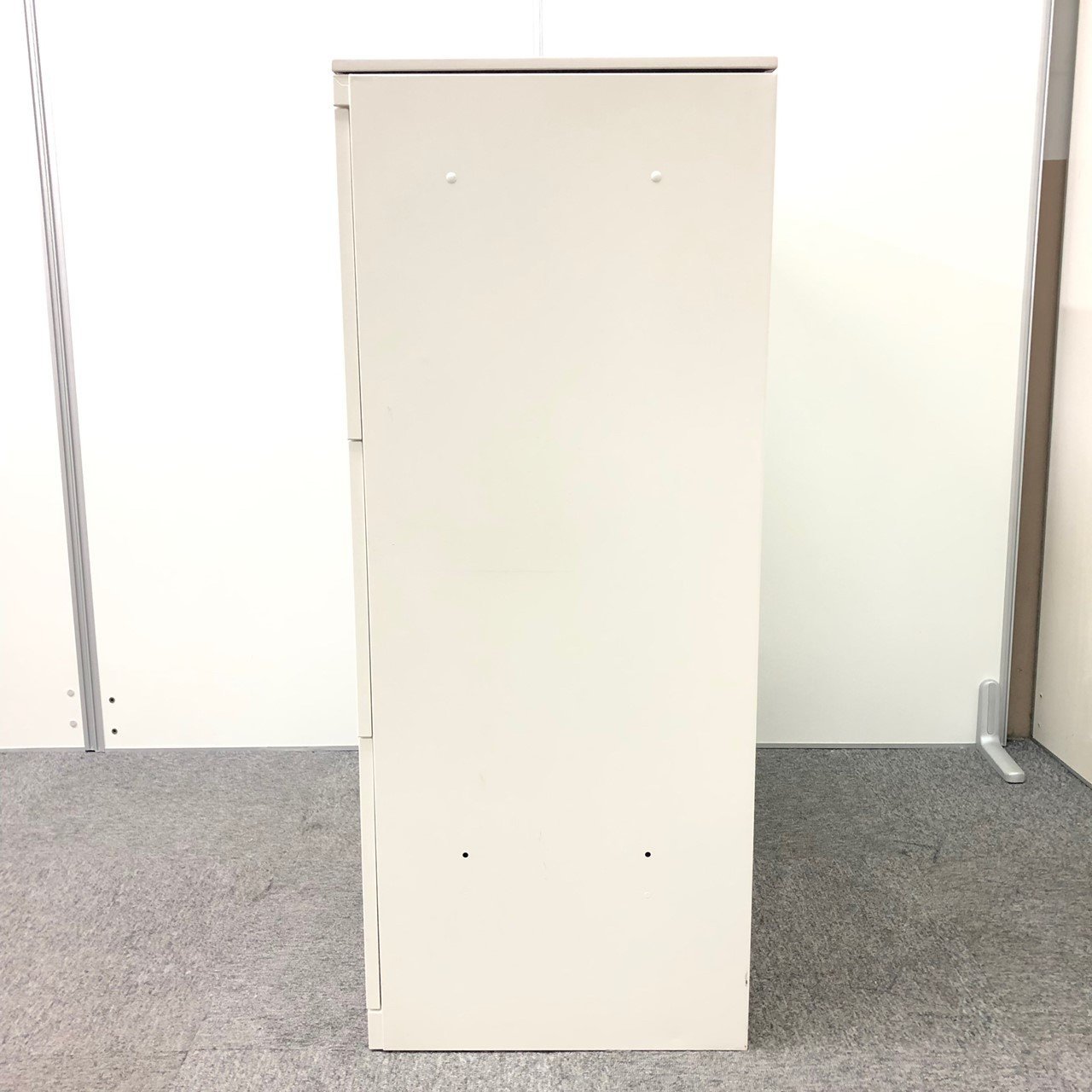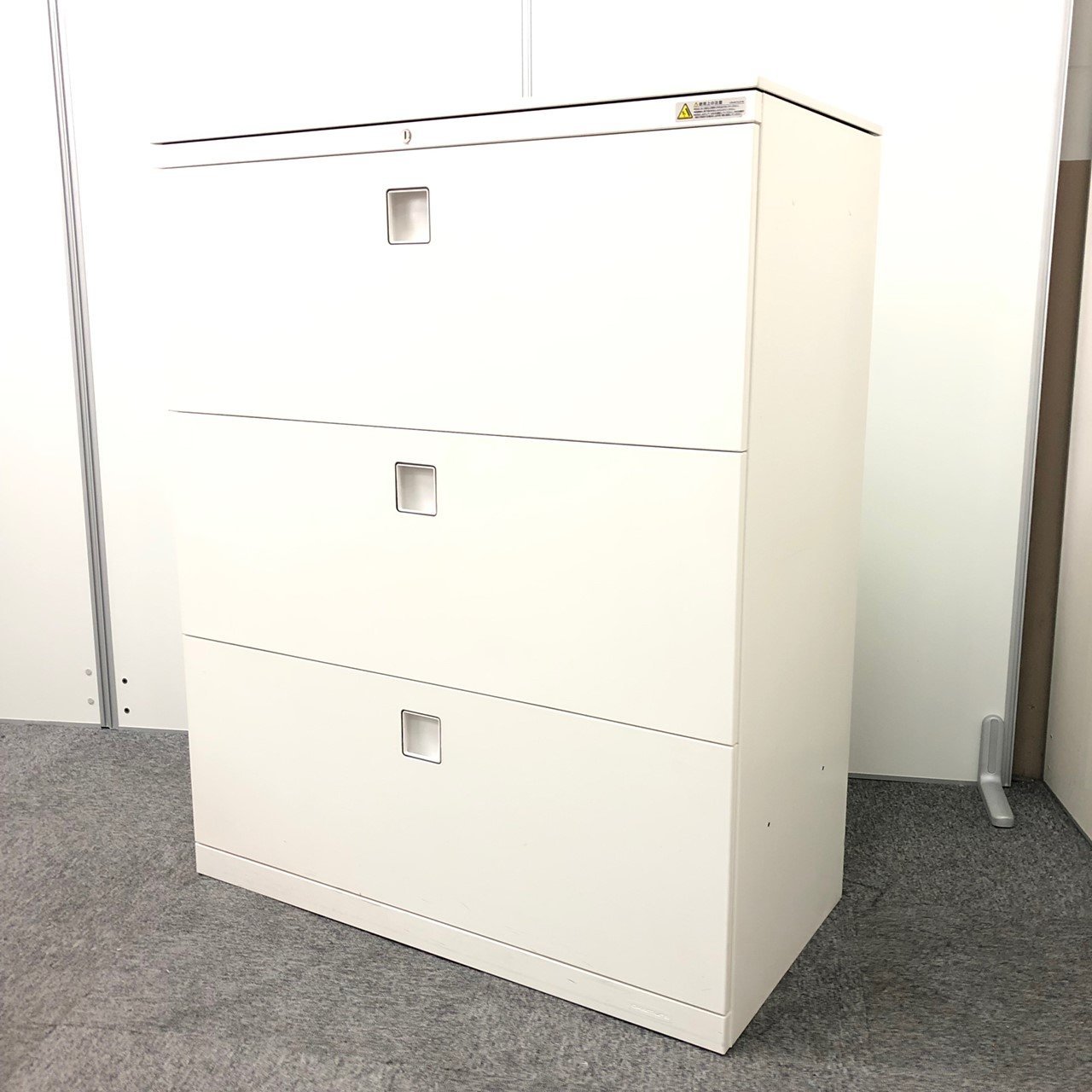 オカムラ レクトライン 3段ラテラル書庫 ホワイト天板 シリンダー錠 鍵付き ※取っ手部分に若干日焼けあり