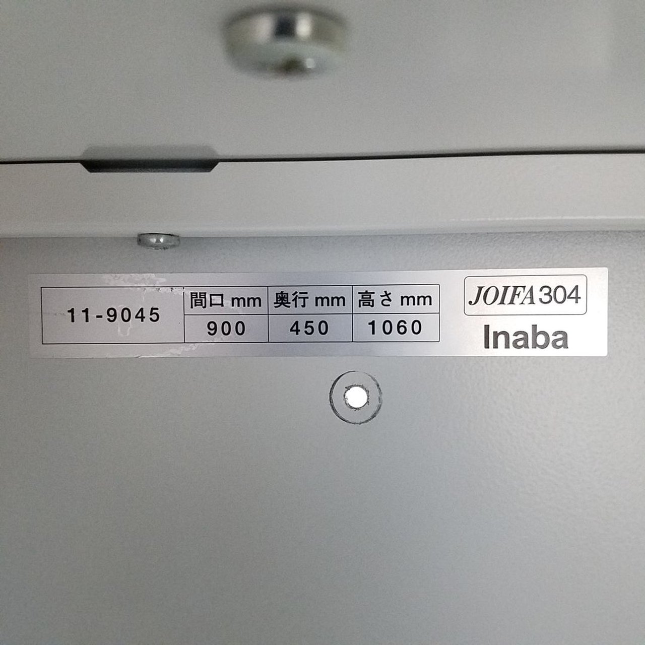 【人気の引き違い戸タイプ!取っ手が大きく使い勝手のよい定番キャビネット!】■イナバ(Inaba)製 TFシリーズ 引き違い書庫 ローキャビネット W900×D450㎜ ■ホワイト /ベース:グレー ■シリンダー錠 ※日焼けあり