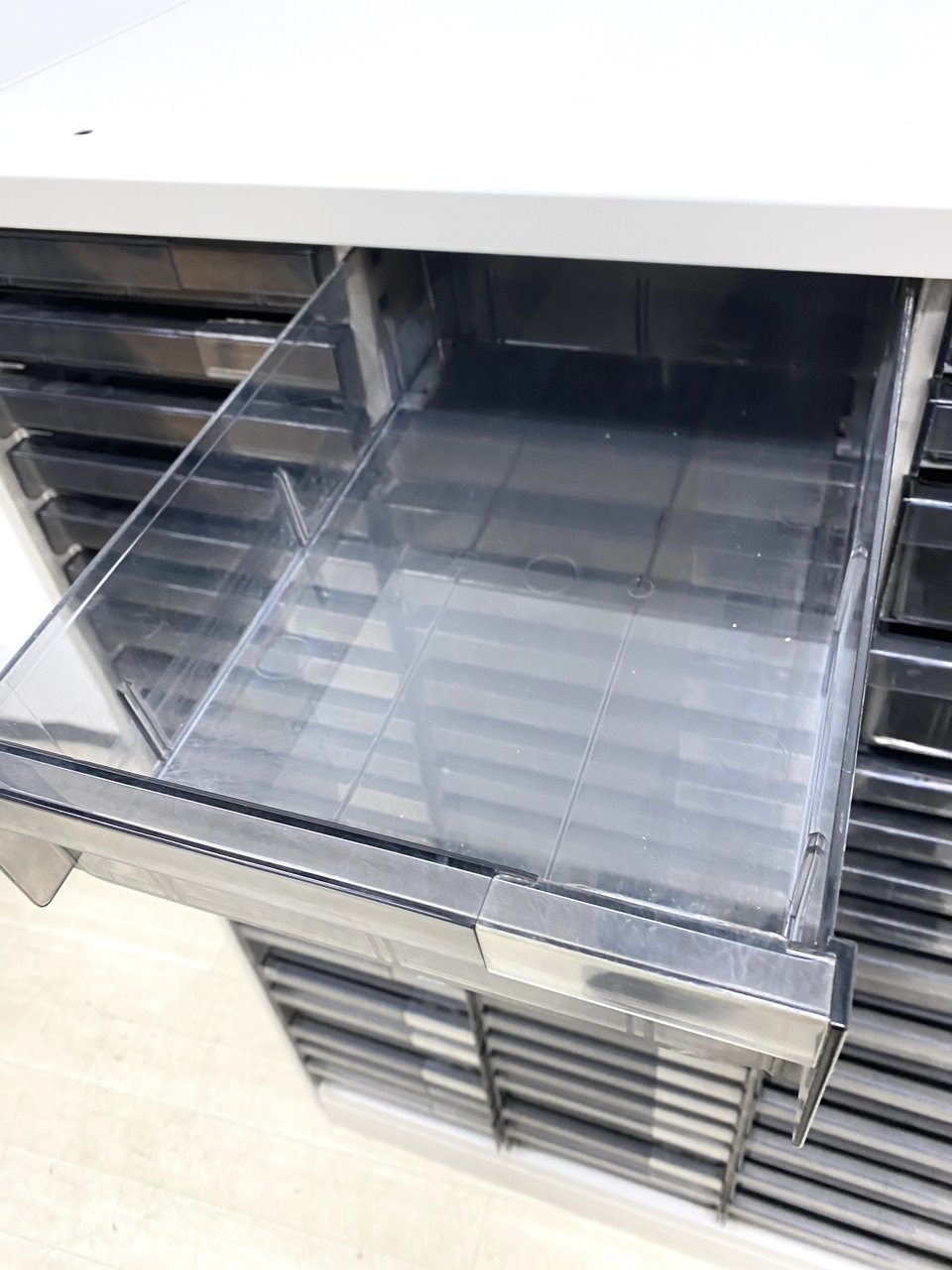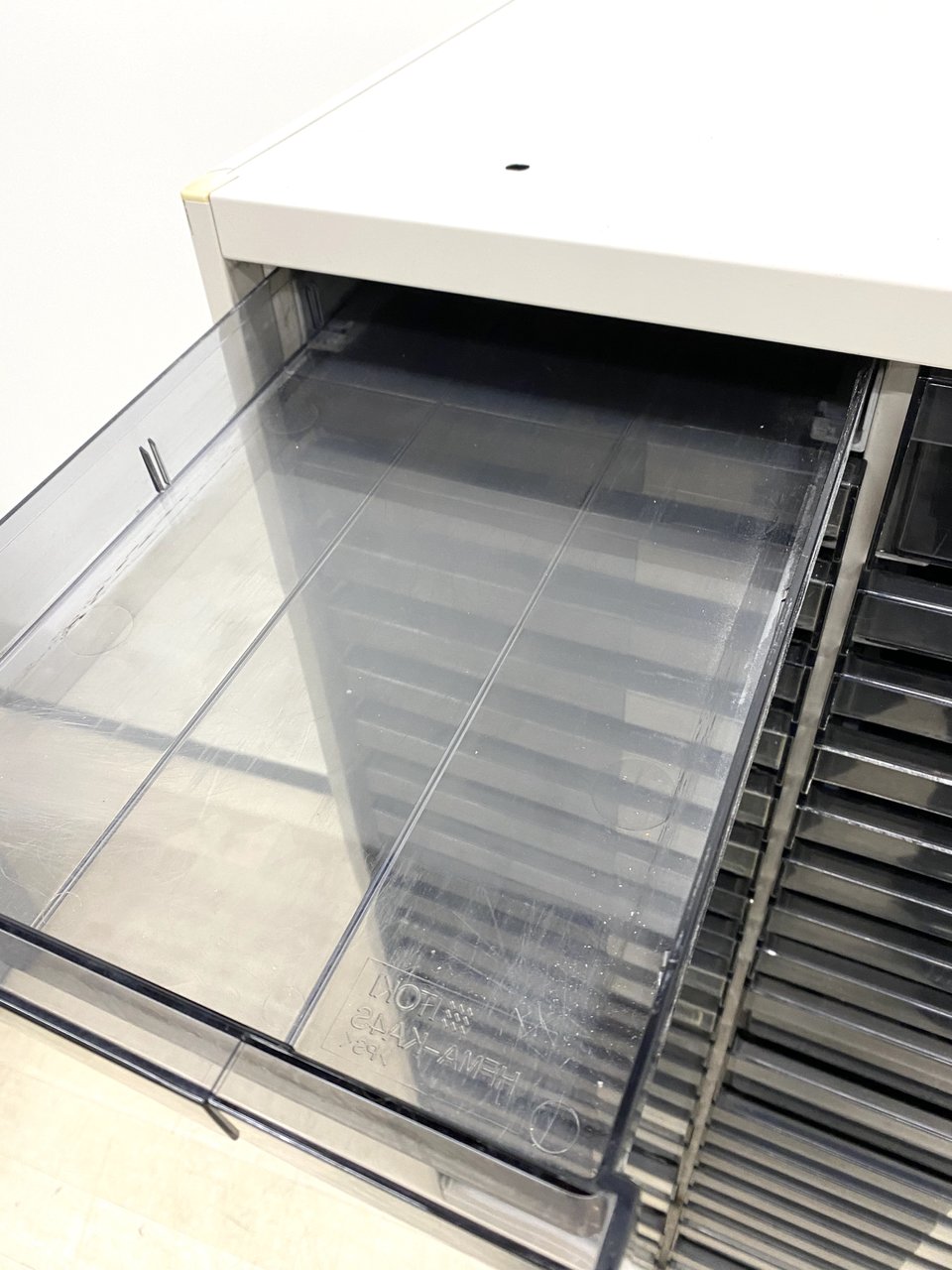 3列浅+深型トレイ混載型のクリスタルトレイ書庫入荷しました!全体的に使用感と部材欠け、トレイ割れが有るのでお安く!!- つくば店