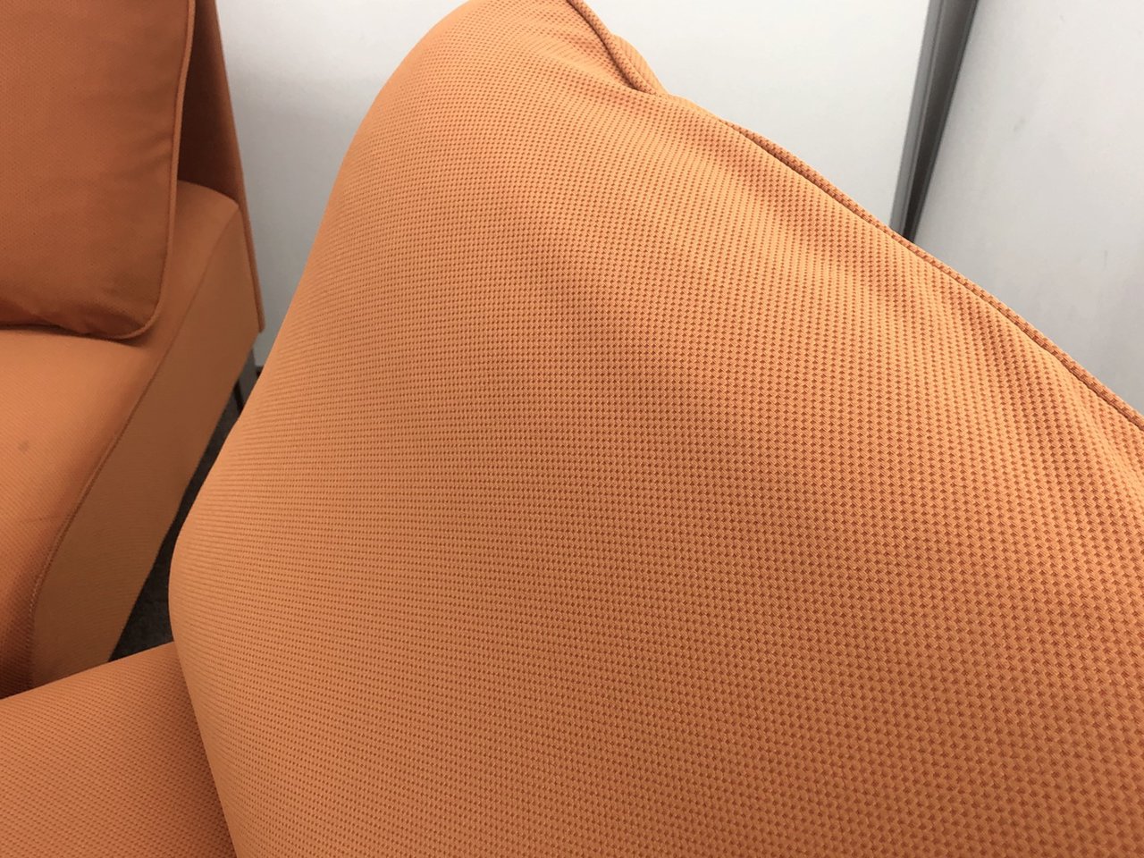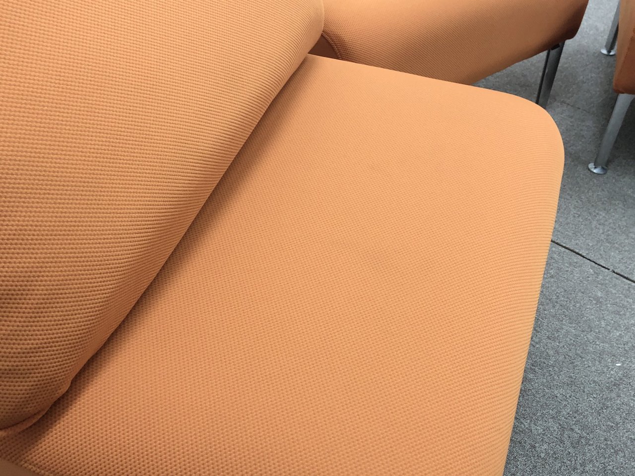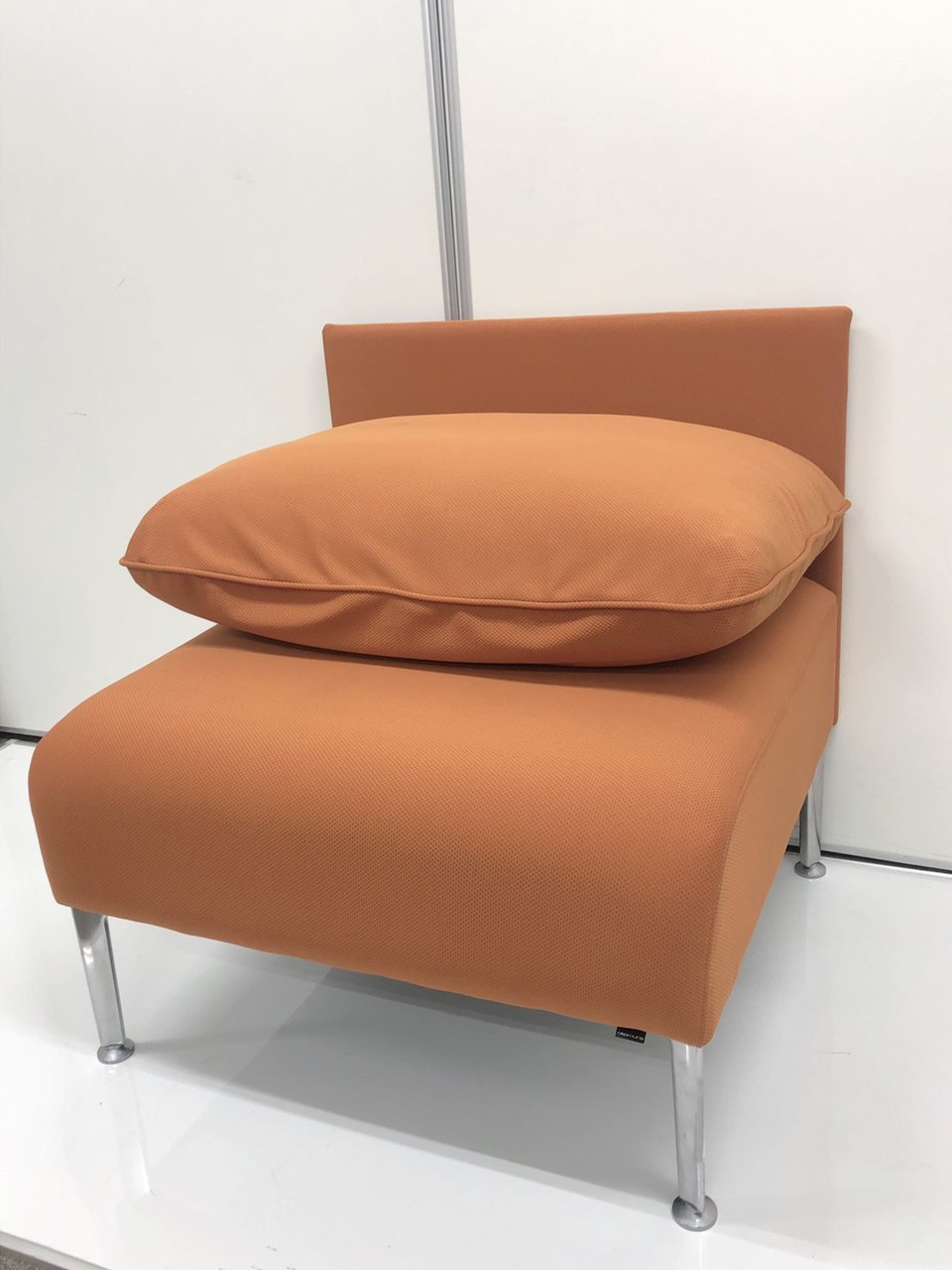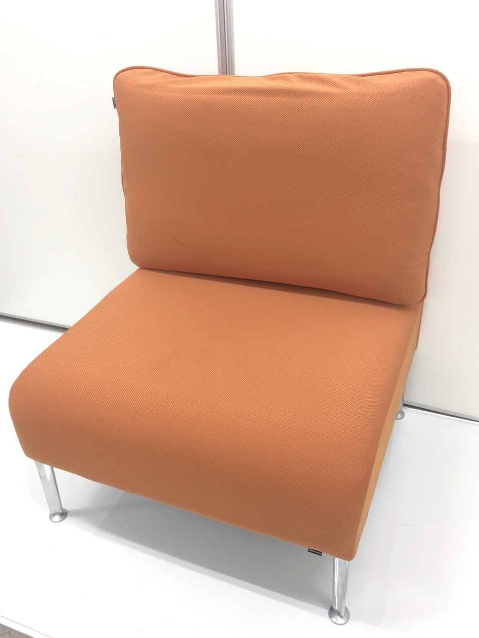 鮮やかなパンプキンカラーが特徴的の1人用ソファとなります。