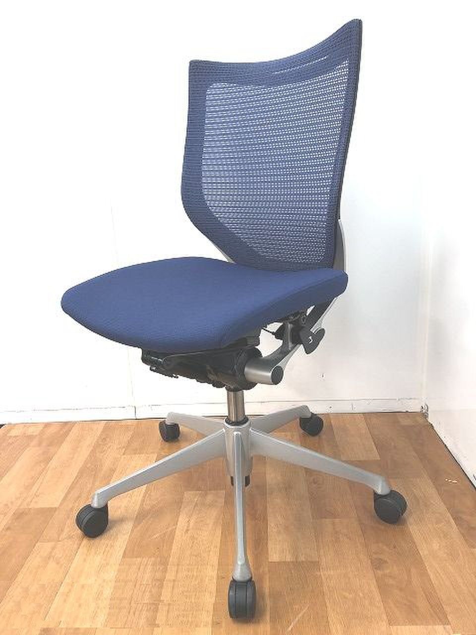 【オカムラ製の王道高級チェア!通気性ばっちりで長時間の着座も快適に過ごせます!】 ■オカムラ(okamura) バロン(Baron) ローバック 肘無し ■ブルー ■背面メッシュ 座面クッション【入替セールにつき30%OFF!】
