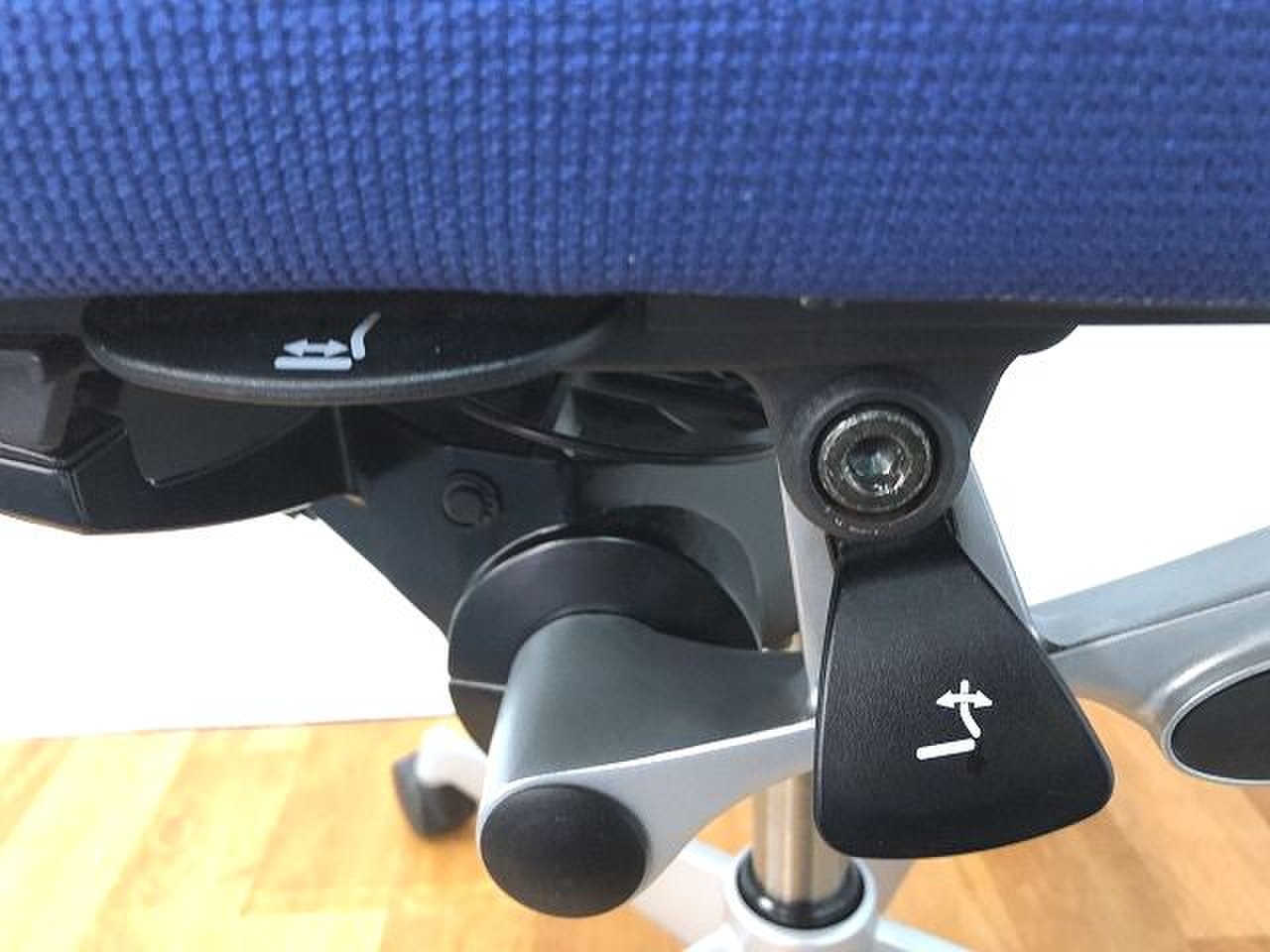 - 座面の右下にあるレバーの操作により座面位置を上下に100mm分調整することが可能です。