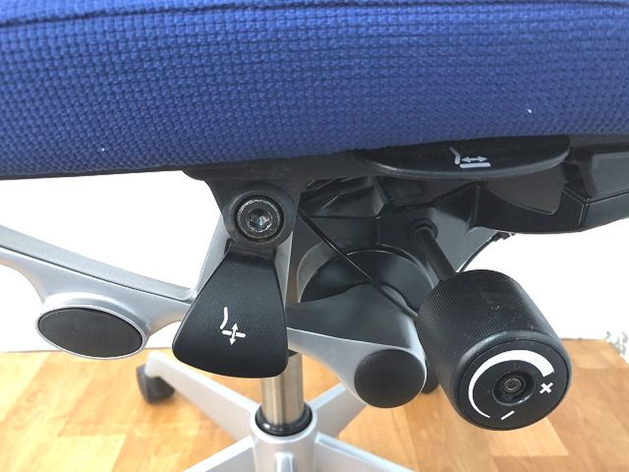 気に入っているのはリクライニング調整の自由さです。同じオカムラ社製の上位モデルや下位モデルも、角度が5段階程度の固定位置だったり、リクライニング強度も4段階だったりしますが、バロンチェアはどちらも無段階。つまり完全に好きな位置、好きな強度に調整することができます。