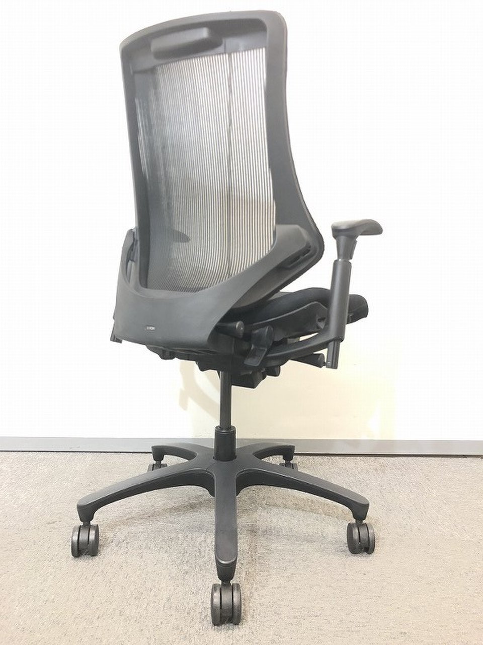 【三次元フォルムが腰にフィット!】希少なエラストマータイプ! ■イトーキ製 エフチェア 肘付 ブラック ハイバック ■姿勢の変化にフレキシブルに対応!