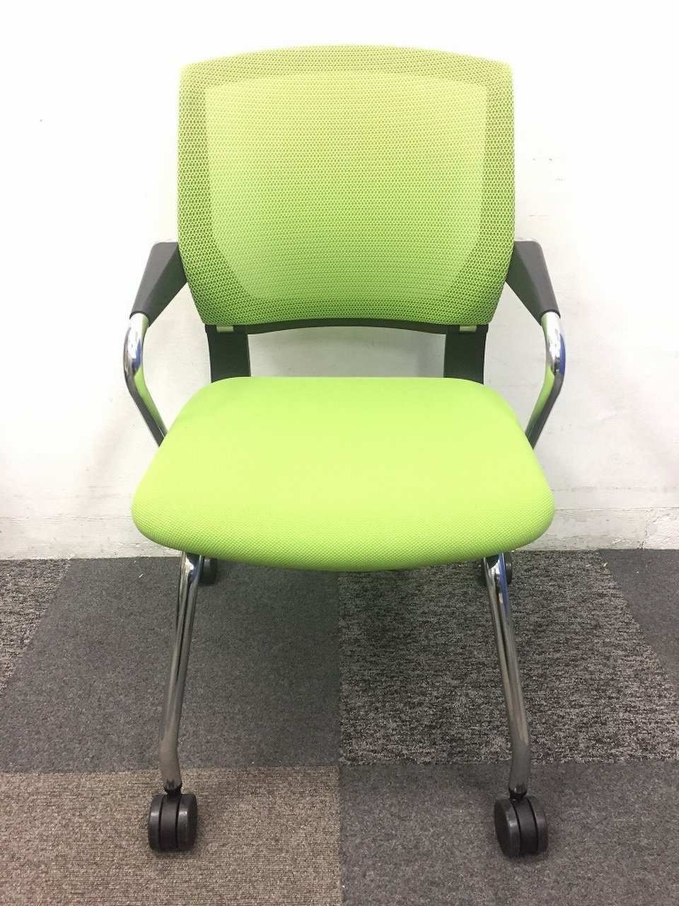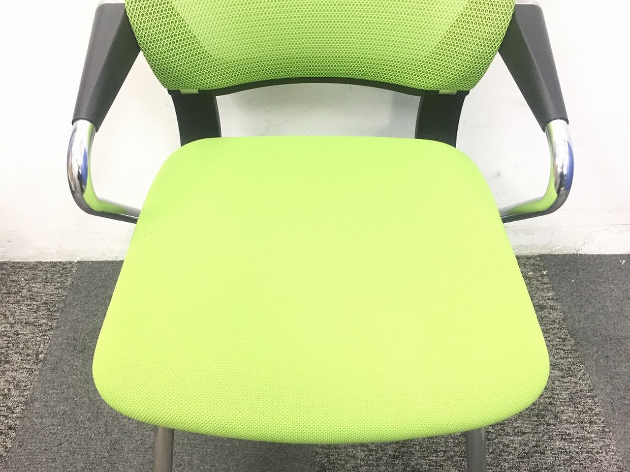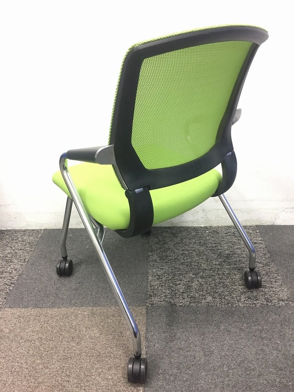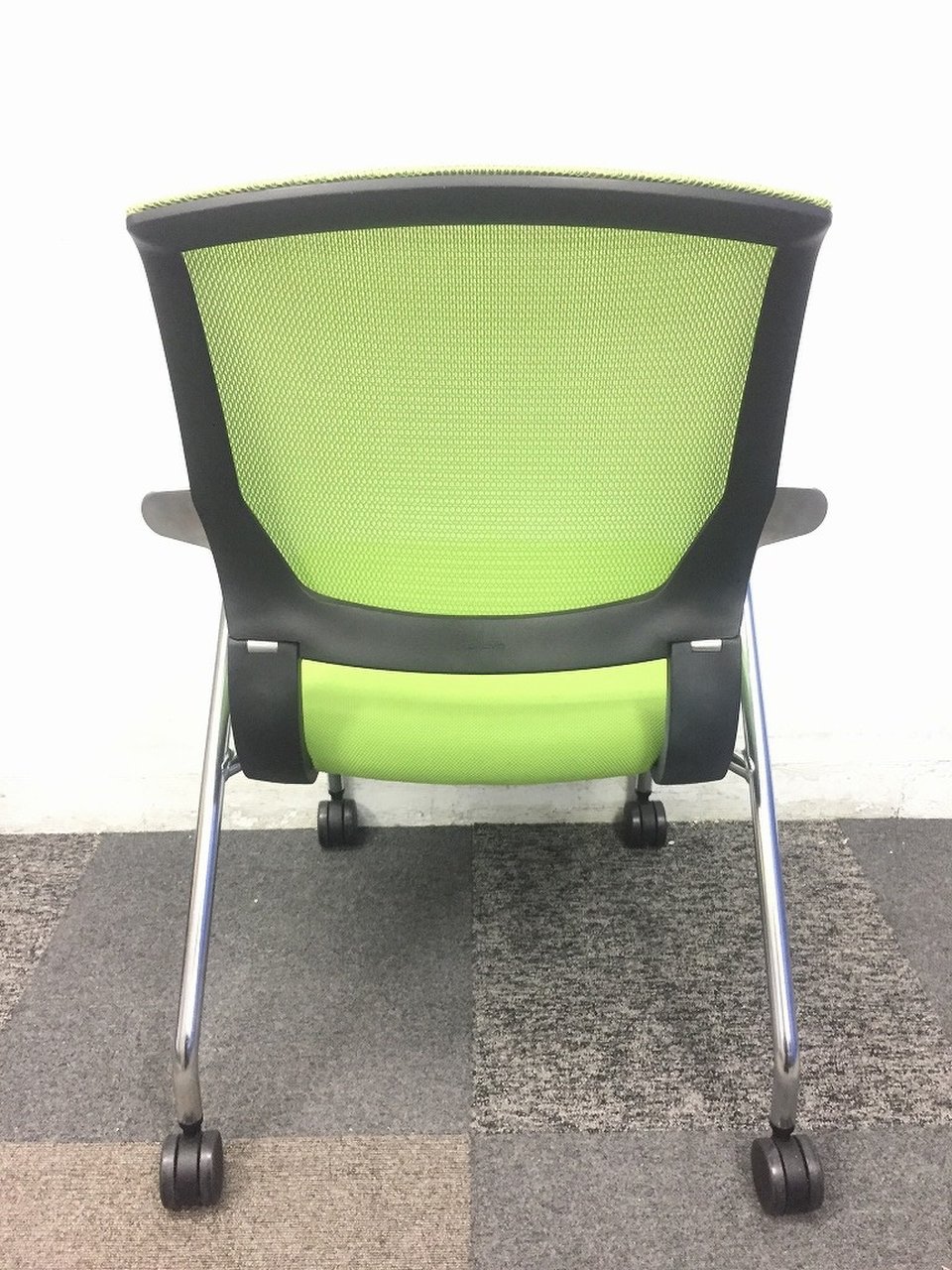 【背にフィットする快適メッシュ!】■コクヨ製 ネスティングチェア ライトグリーン ■リラックスできる肘付!厚めのクッション!- 川崎店