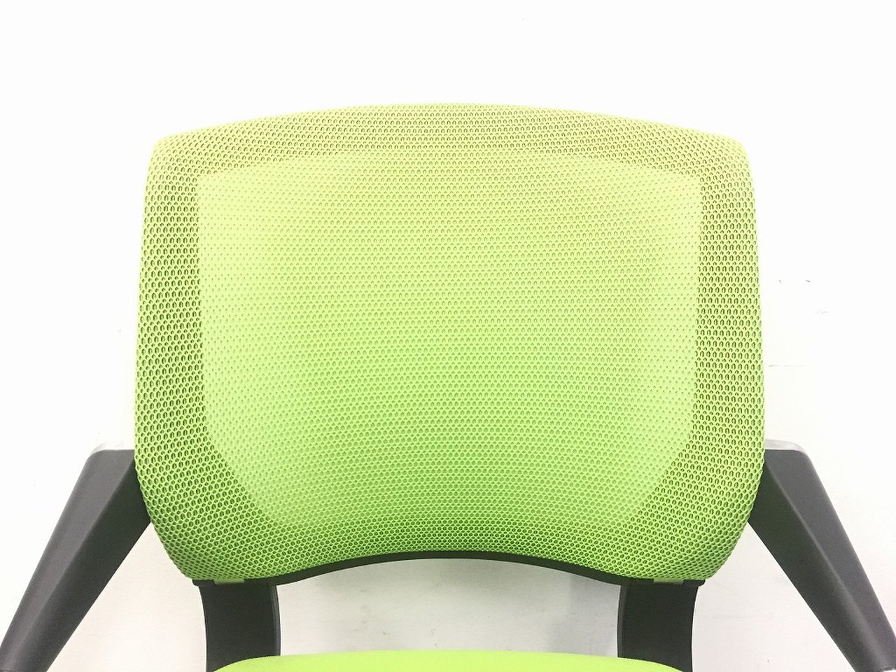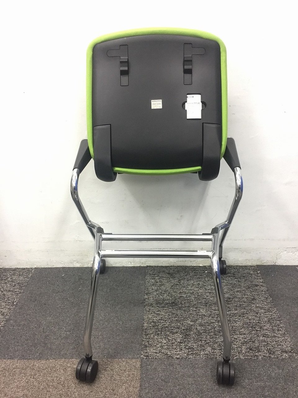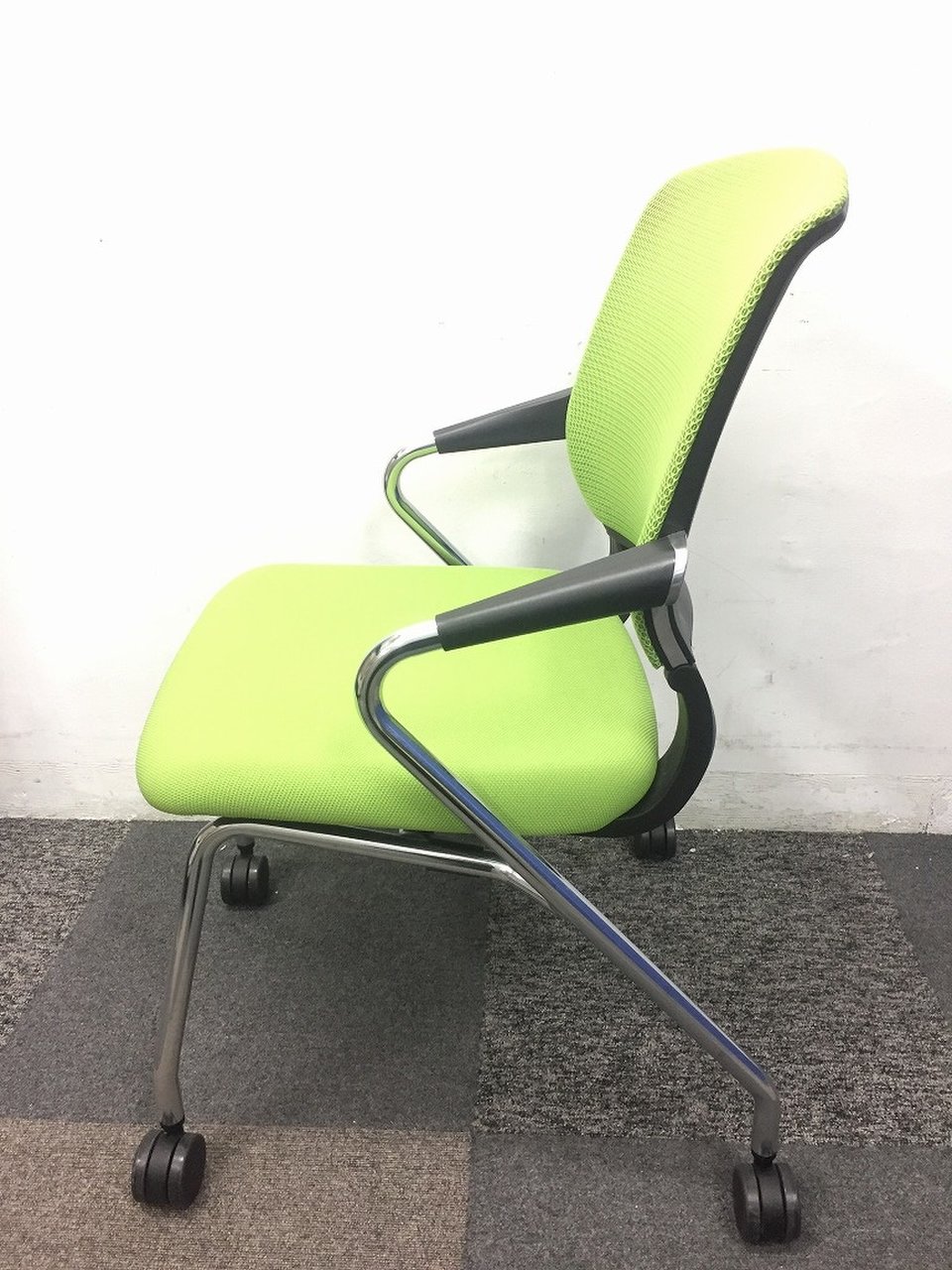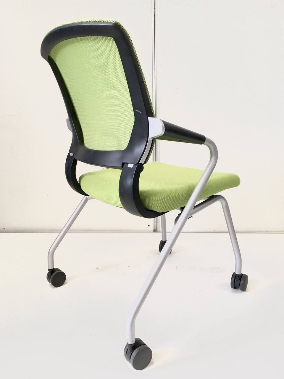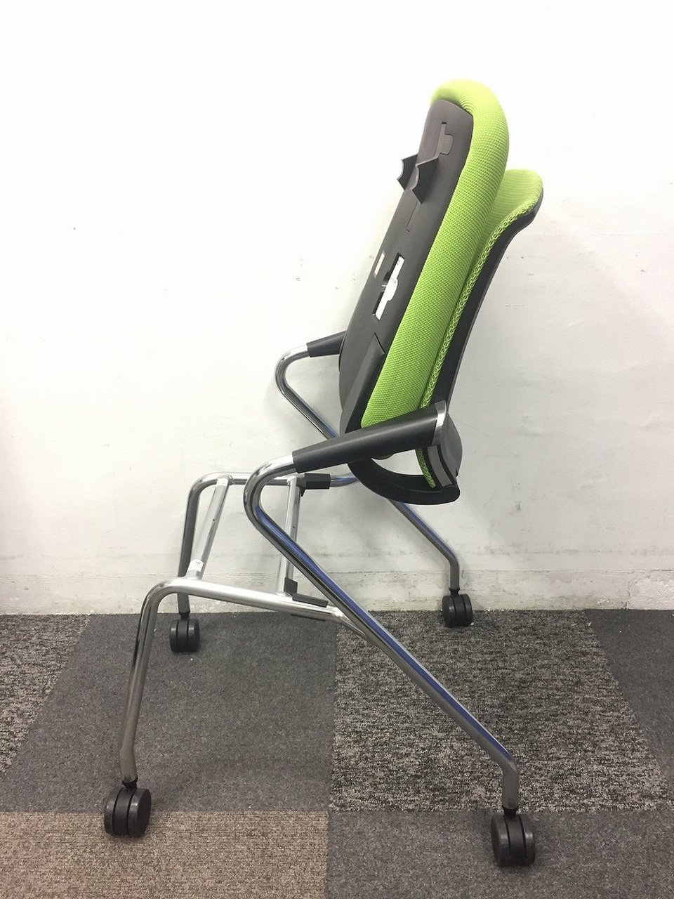 【背にフィットする快適メッシュ!】■コクヨ製 ネスティングチェア ライトグリーン ■リラックスできる肘付!厚めのクッション!- 川崎店