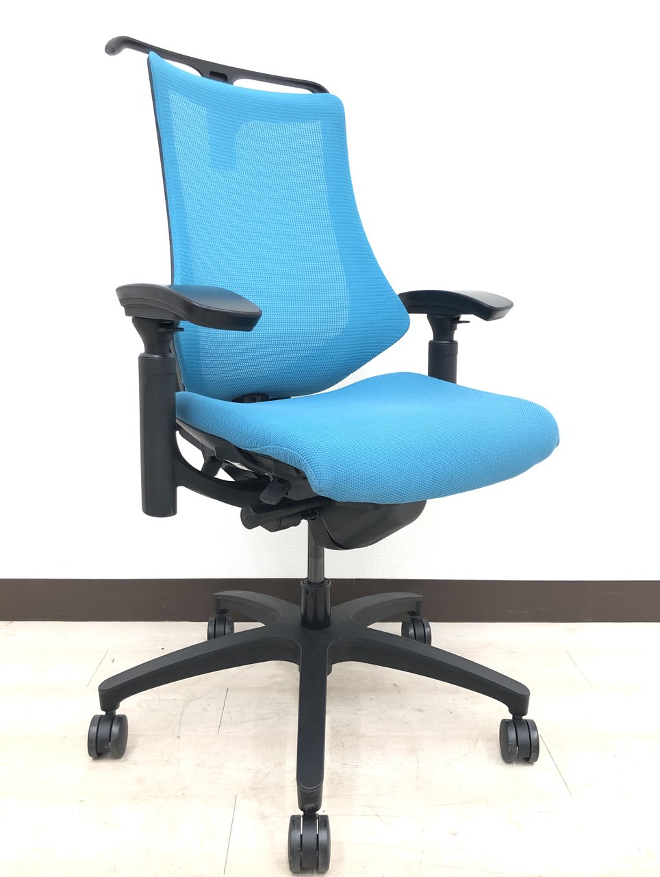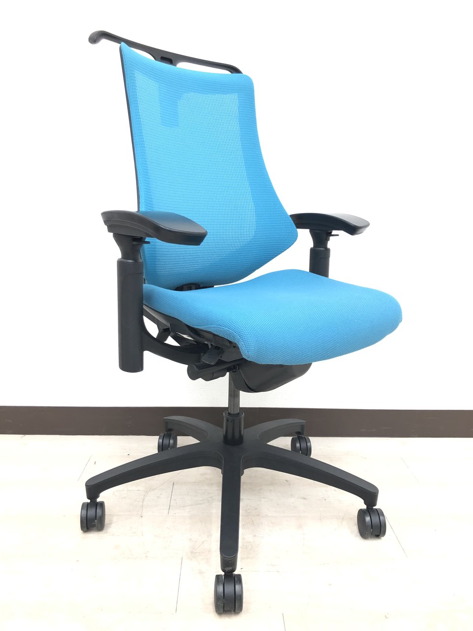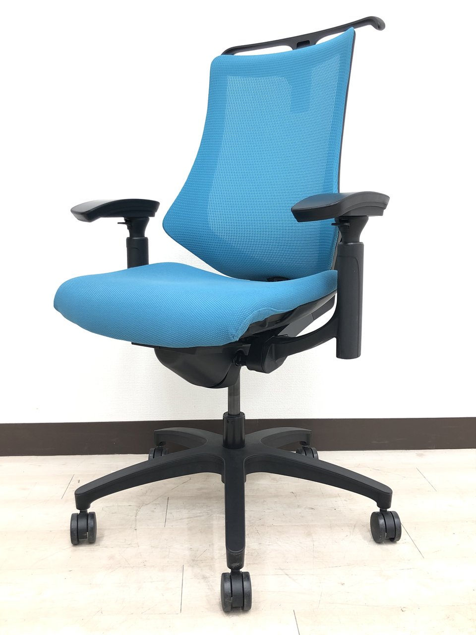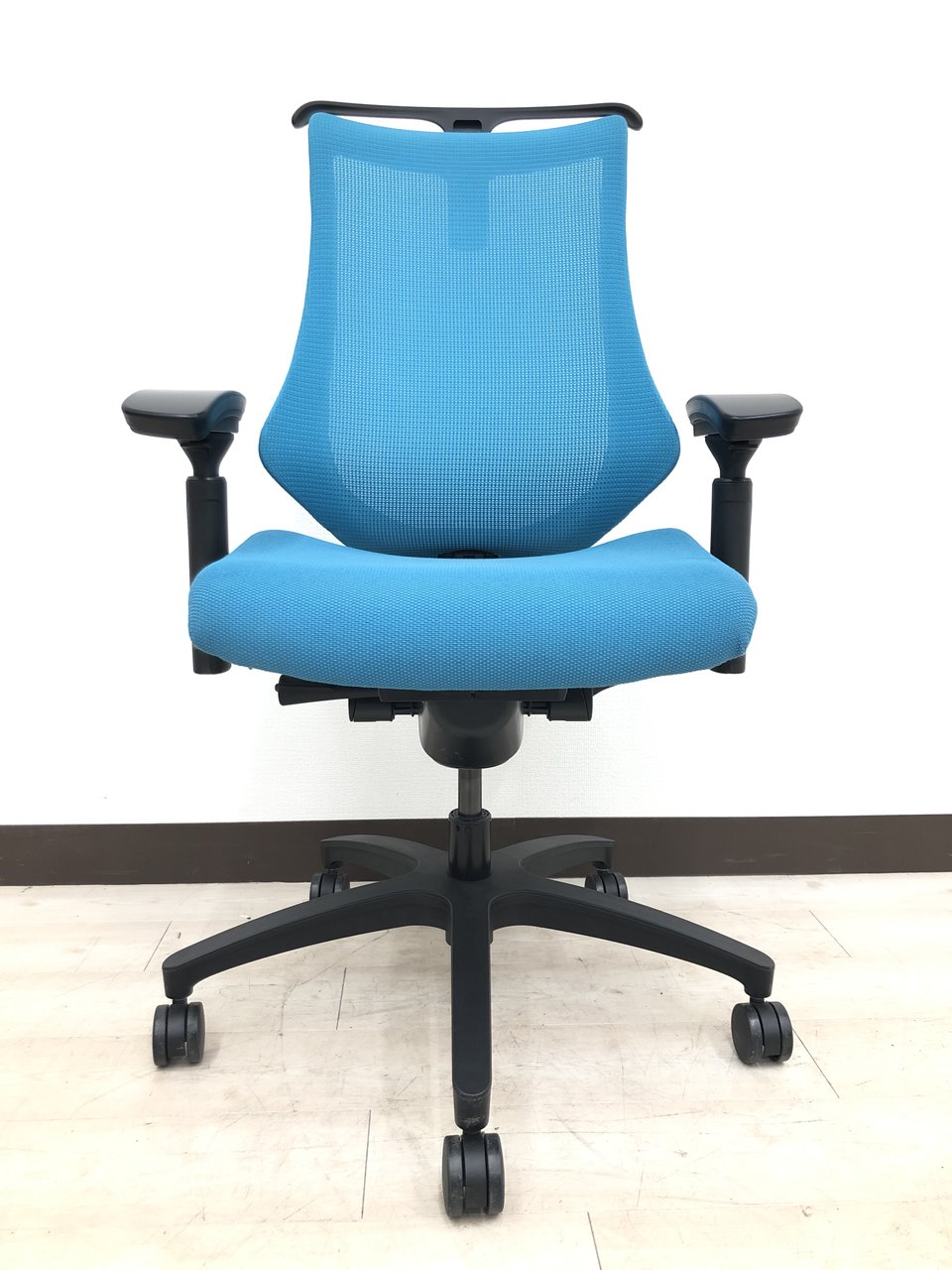 【入替セール】【姿勢の変化に寄り添う、体にフィットする快適な座り心地!】■イトーキ(ITOKI)製 エフ(f)チェア 肘付き ハイバック クロスバックタイプ ■可動肘 ■ストロングブルー×ブラックシェル