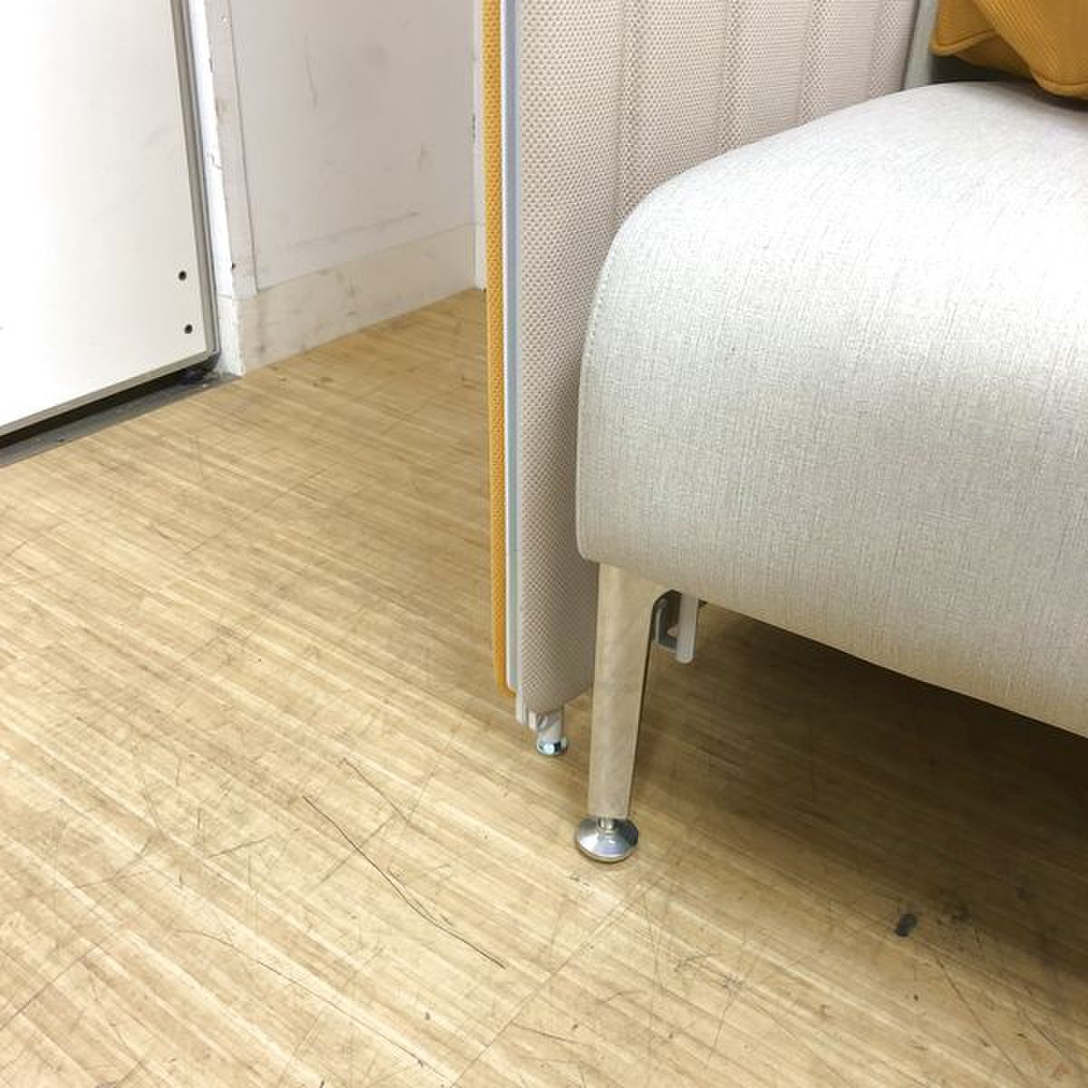 - あり黄ばみ・変色が広い範囲にうっすらある、または濃い黄ばみ・変色が一部ある。(例:三人用ソファ、二人用ソファ、一人用ソファの場合、背もたれ、肘かけ、座面等、 センターテーブルの場合、天板、脚にある。)