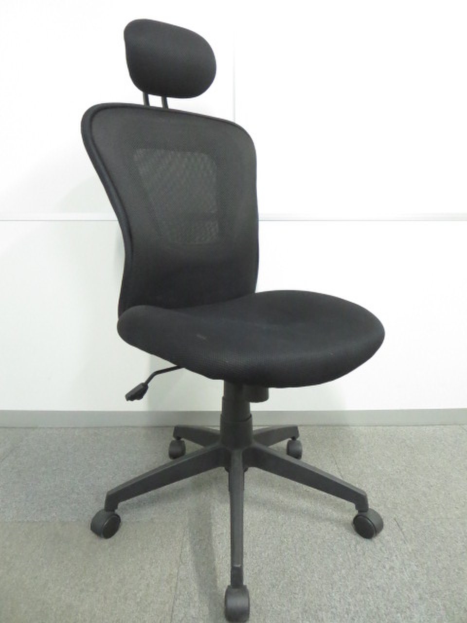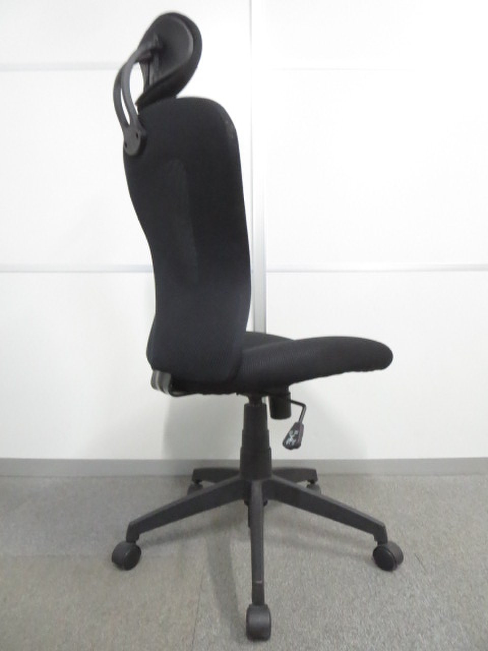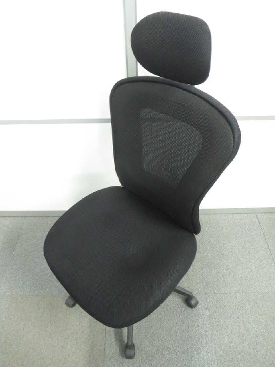 【お値段重視】■ハイバックメッシュチェアー ヘッドレスト付 ブラック ■【訳あり商品】廉価品につき若干歪みあり- 川崎店