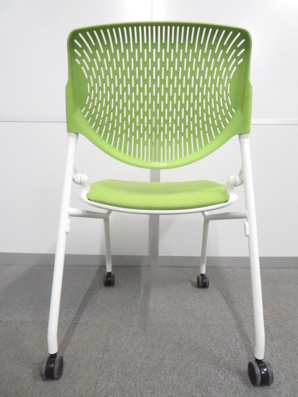【ポップなデザイン!コミュニケーション活性化に!】■オカムラ製 ルナチェア ライムグリーンシェル ■【フレキシブルに使える!】ネスティングチェア!- 川崎店