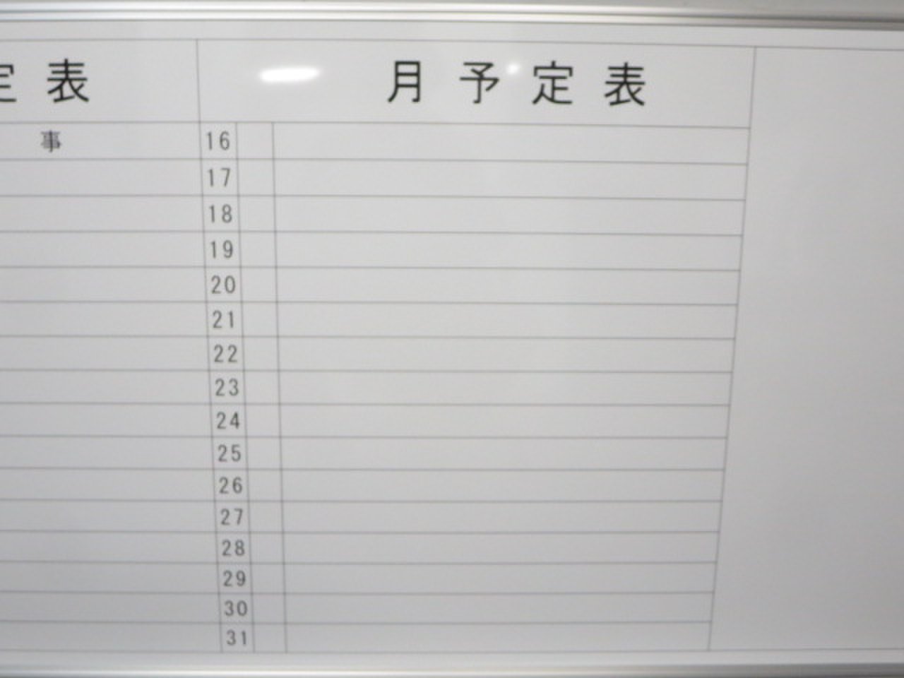 社内行事や外出の予定などの記入に便利な月予定表ボードです。