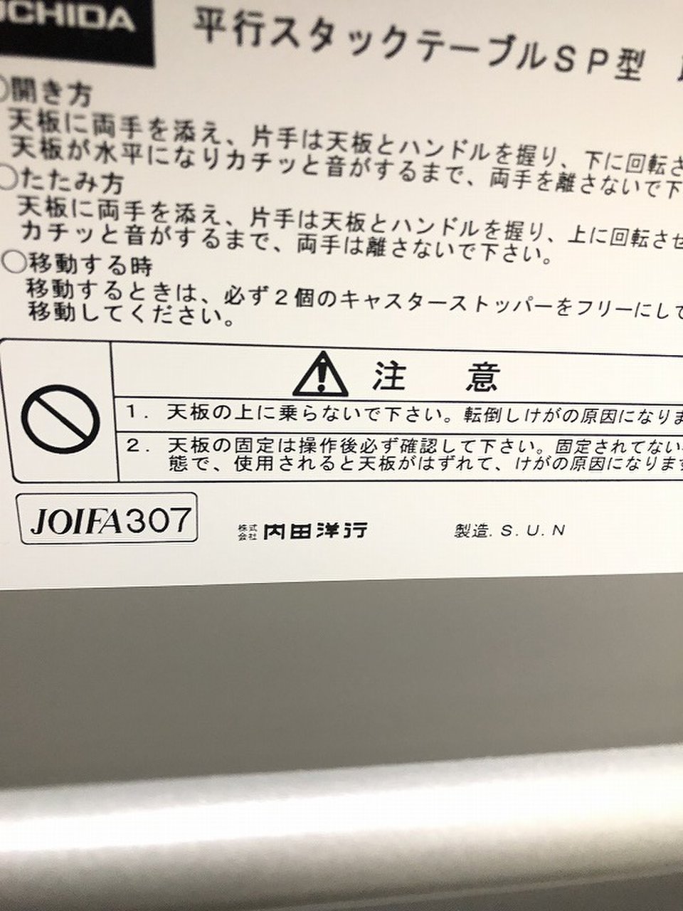 - 壊れている天板歪み、アジャスター無し、キャスター使用不可のようにそのテーブルの本来の効用を果たすための機能に不具合がある。
