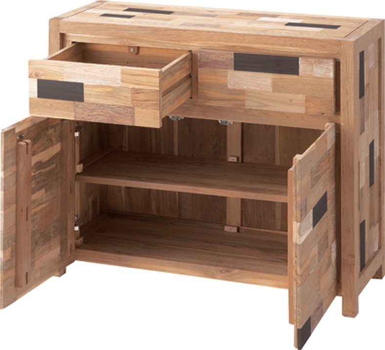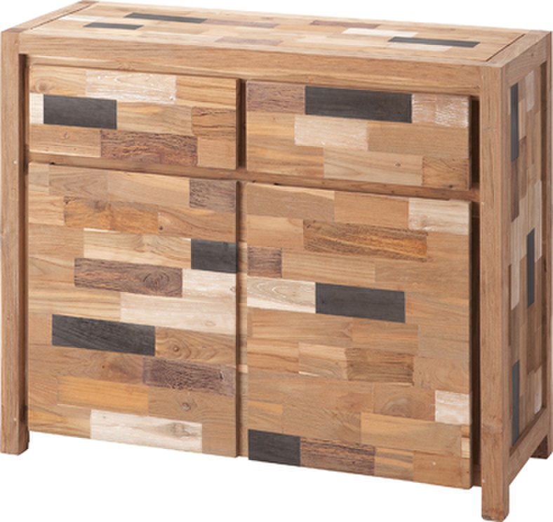 色とりどりな木の色味で表情豊かなチェストです。
