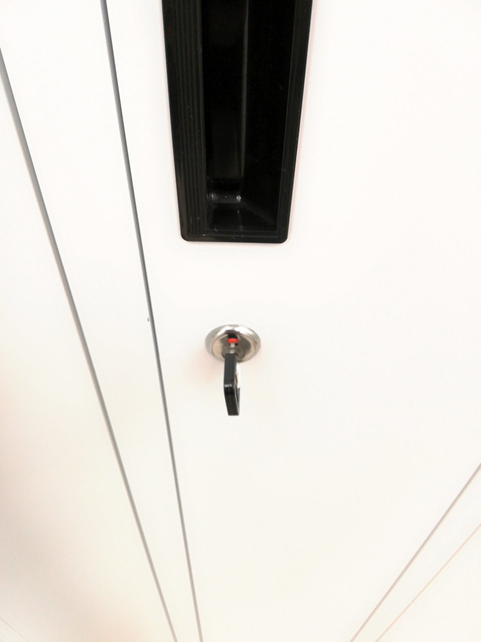 4名様が使用できるこちらのロッカーはシリンダー錠タイプ。