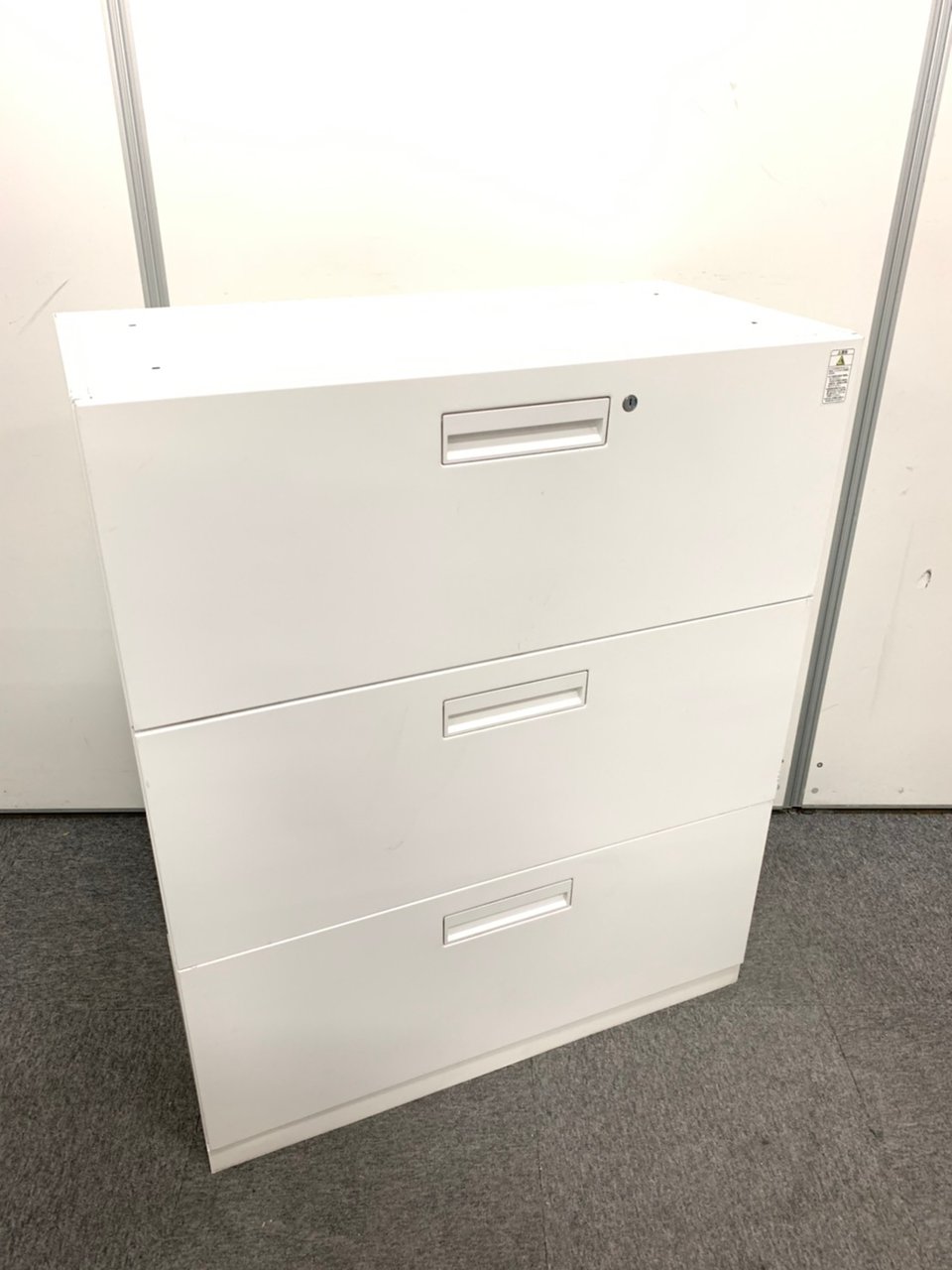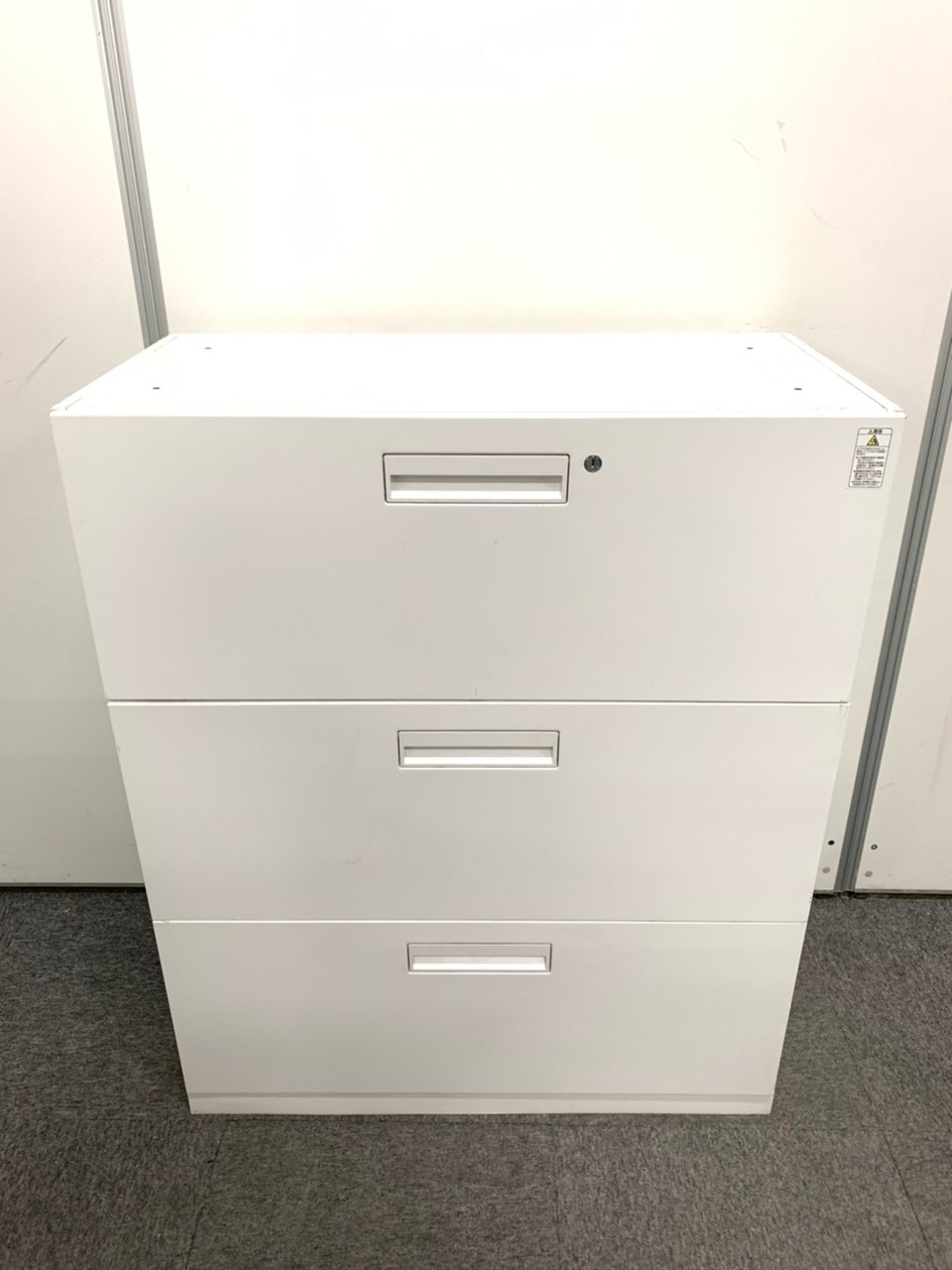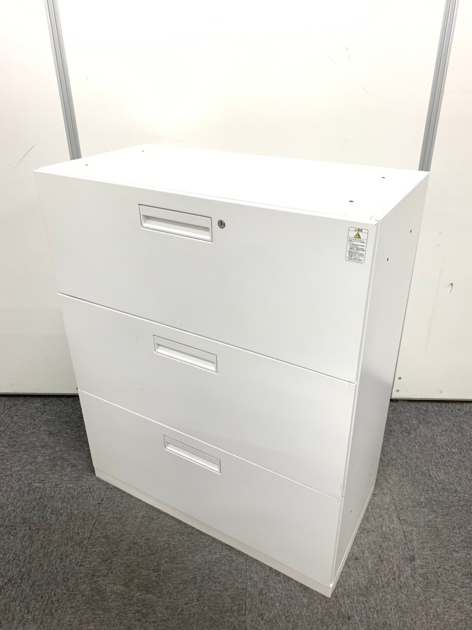 【2020年製】【収納力抜群の3段ラテラル書庫!A4書類が大量に収納可能!】■コクヨ(KOKUYO)製 エディア(EDIA)シリーズ 3段ラテラル ローキャビネット H1130㎜ ■天板・ベース付き ■ホワイト ■シリンダー錠【2511】弊社使用欄【A01044970】