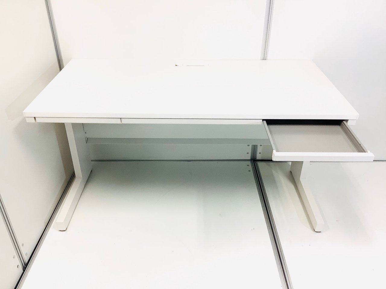 平机 内田洋行 スカエナ(SCAENA) 配線:Ktype(開閉式のカバータイプ) ホワイト天板 引き出し付き ゆったりつかえるW1400サイズ