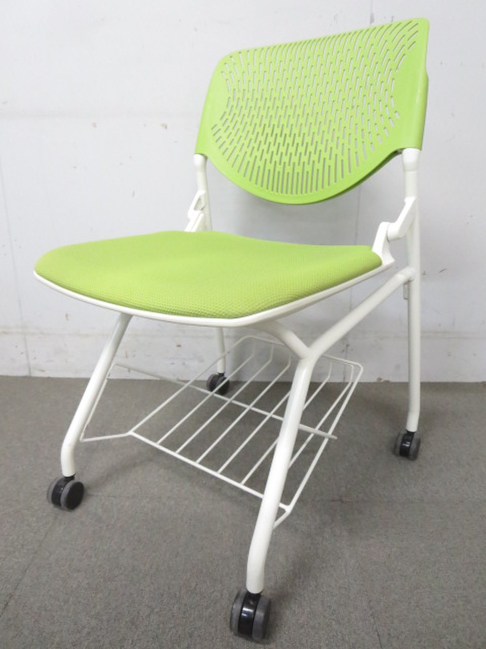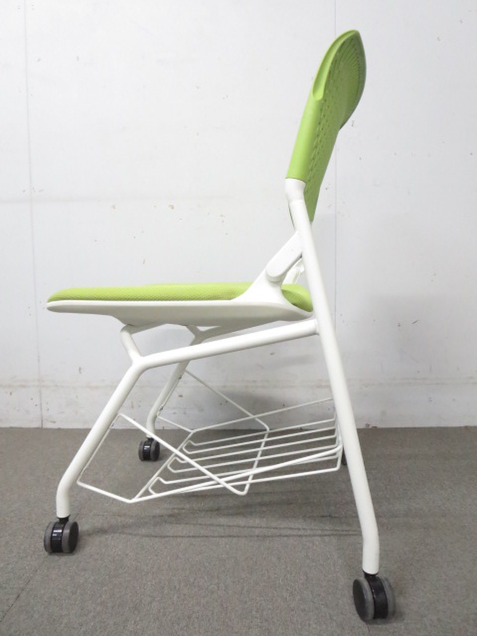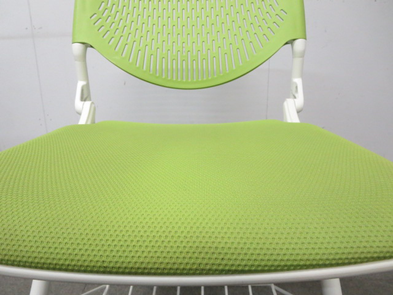 【T11】【T10】【商品入替のため、残り6脚限り】オカムラ製 ルナシリーズ ライムグリーン ホワイトフレーム 軽快なデザインが人気 ネスティングチェア!!