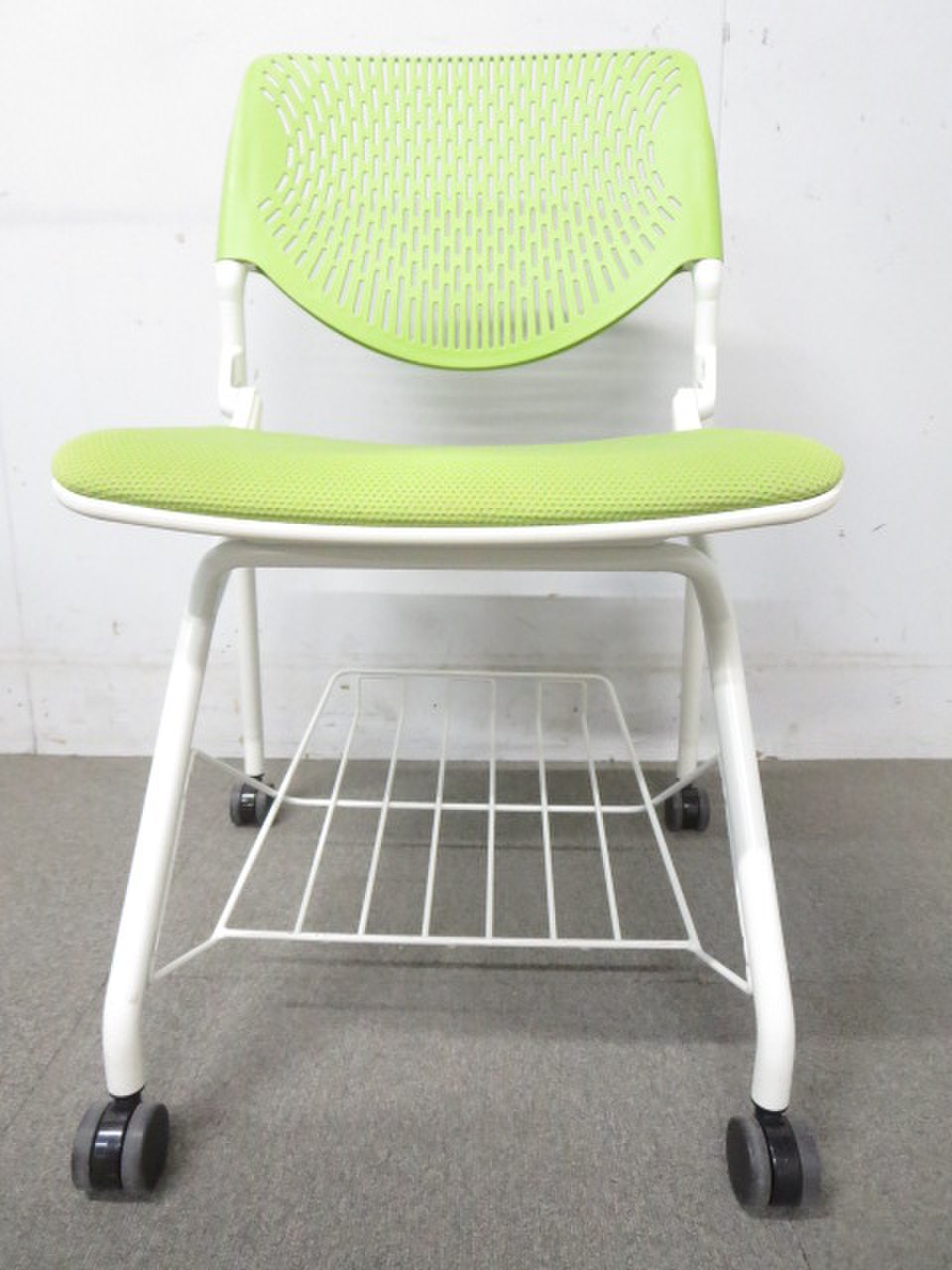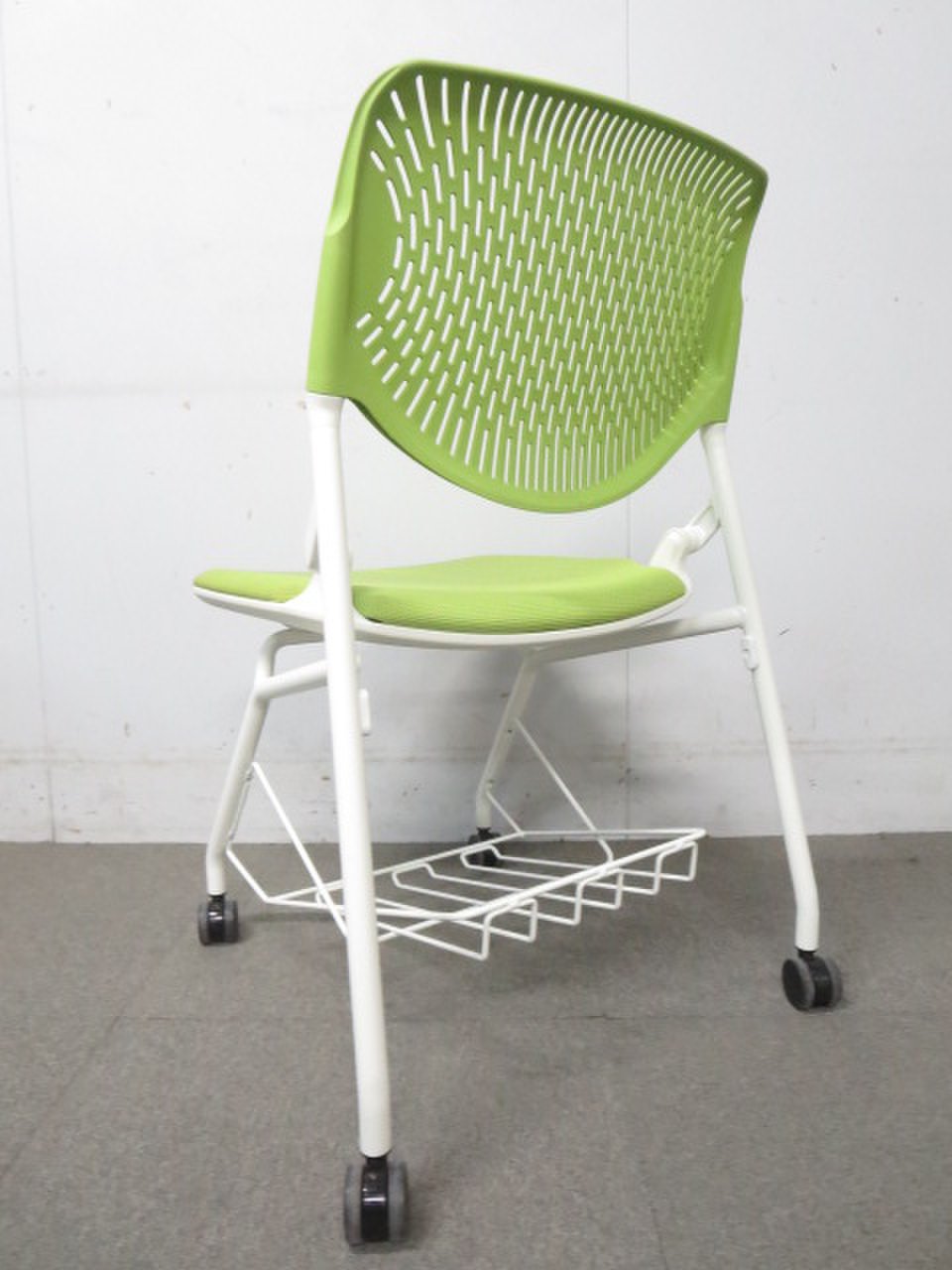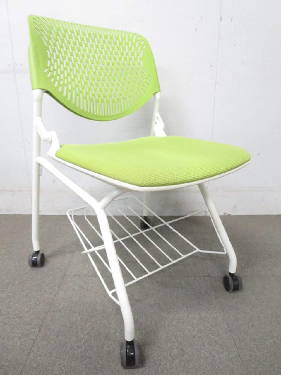 【関東倉庫在庫品】【フレキシブルに使える!便利なネスティングチェア!】■オカムラ(okamura) ルナチェア(RUNA) ネスティングチェア ミーティングチェア 肘無し ■キャスター付 ■背面樹脂メッシュ(ヌードタイプ) ■グリーン 【弊社使用欄:A01014732】【ECBMC】