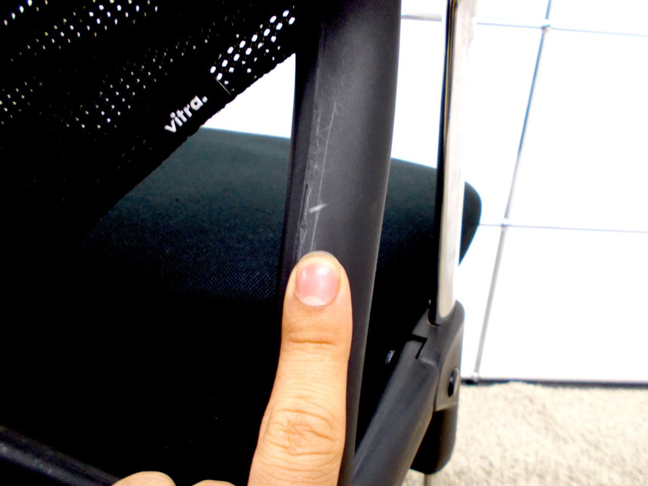 - 目立つ箇所あり傷・破れ・ほつれ・へたり・しわが多数または深い傷・破れ・ほつれ・へたり・しわが一部ある。※座面・背もたれ、シェル、脚部等にある。