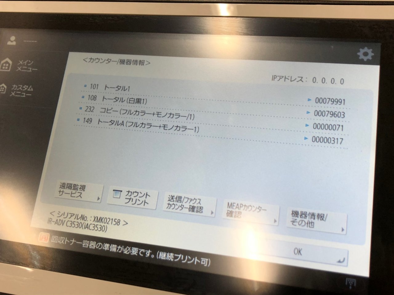 型式は、imageRUNNER ADVANCE C3530F。