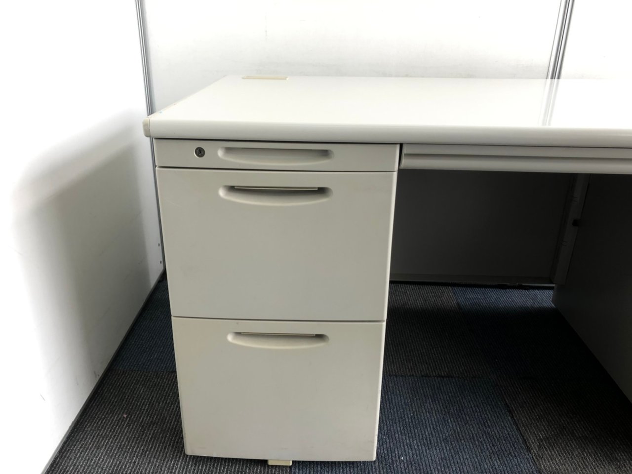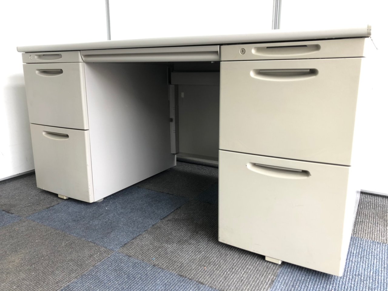 上長席・役員向けサイズ オカムラ SDデスクシステム 両袖机 定番のW1400サイズ 汚れの目立ちにくいニューグレー 鍵付き シリンダー錠