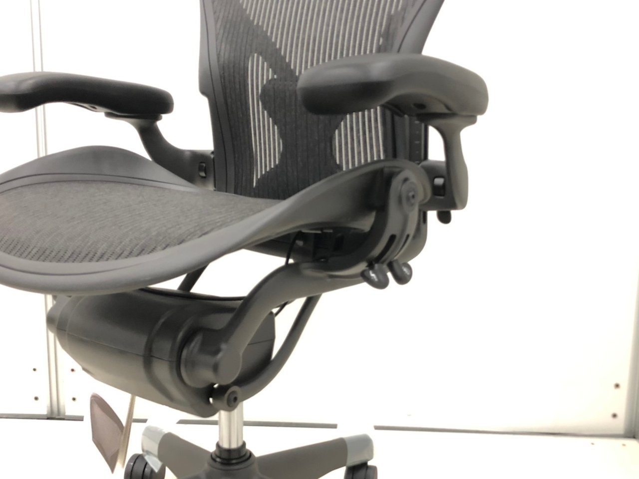 【★状態イマイチのためお安く!】■ハーマンミラー製 アーロンチェア Bサイズ 固定肘 ※キズあり・ランバーサポート無・昇降ガス圧弱めのためお安く!【訳あり特価品】