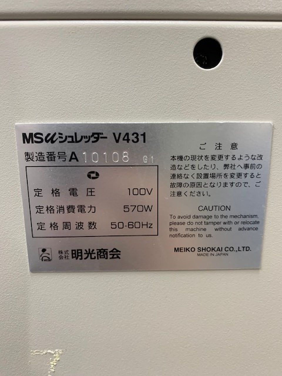 【中古】 MSシリーズ MS-V431 明光商会 シュレッダー 287646