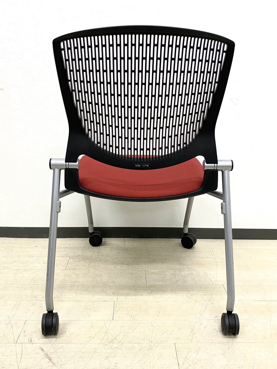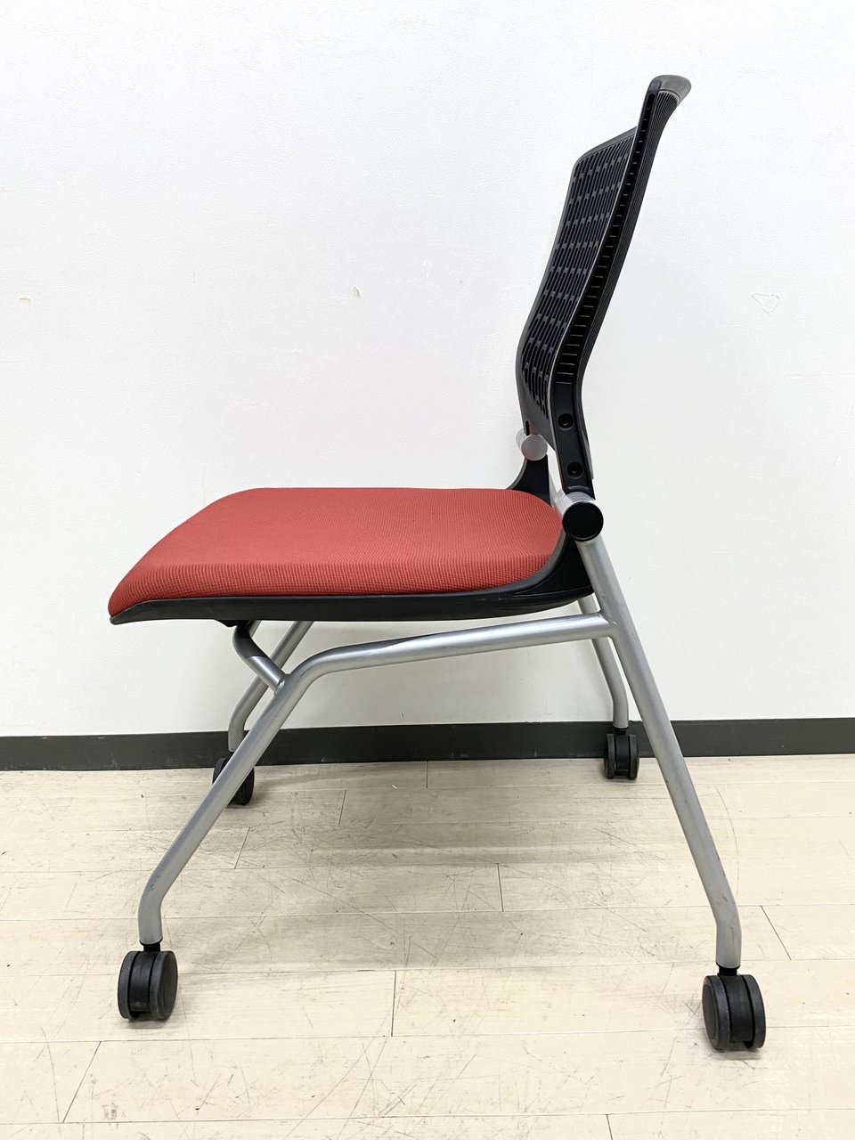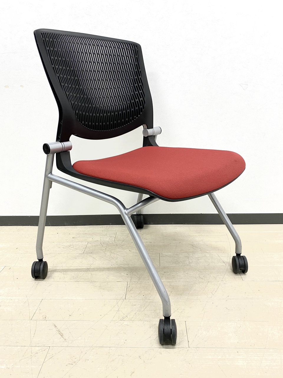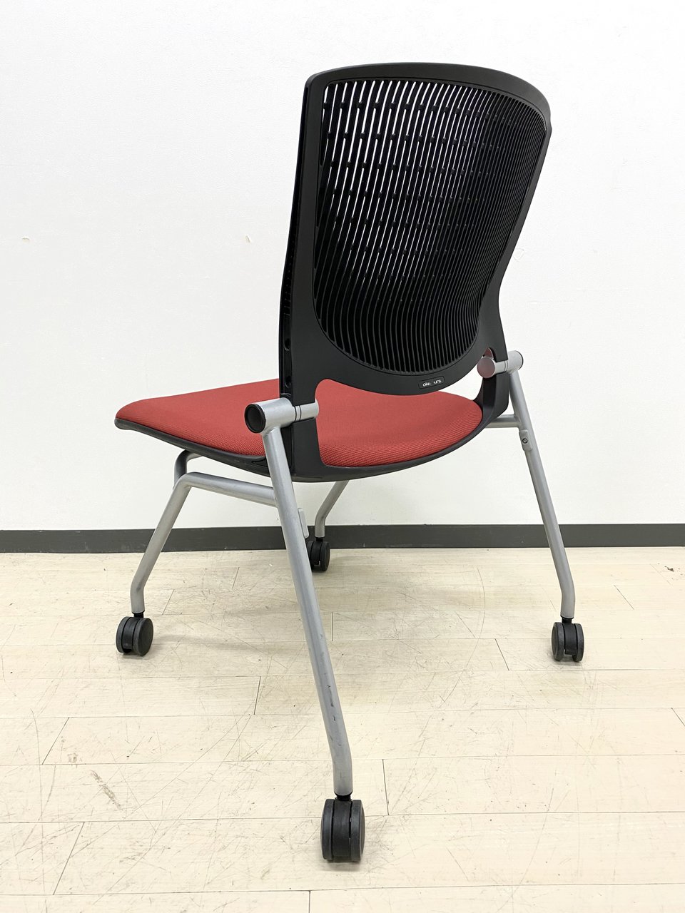 【在庫入替セール】【8脚限定】【しなやかにワーカーを受け止める洗練されたデザイン!使わない時は平行に重ねて収納可能!】■オカムラ(okamura)製 グラータ (Grata) 肘無し ミーティングチェア ネスティングチェア ■背パッド付き ■キャスター付 ■レッド【K10】