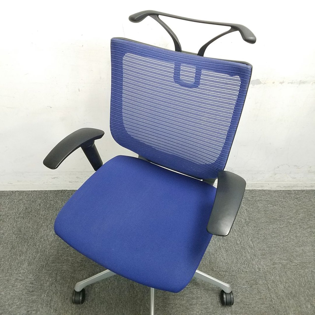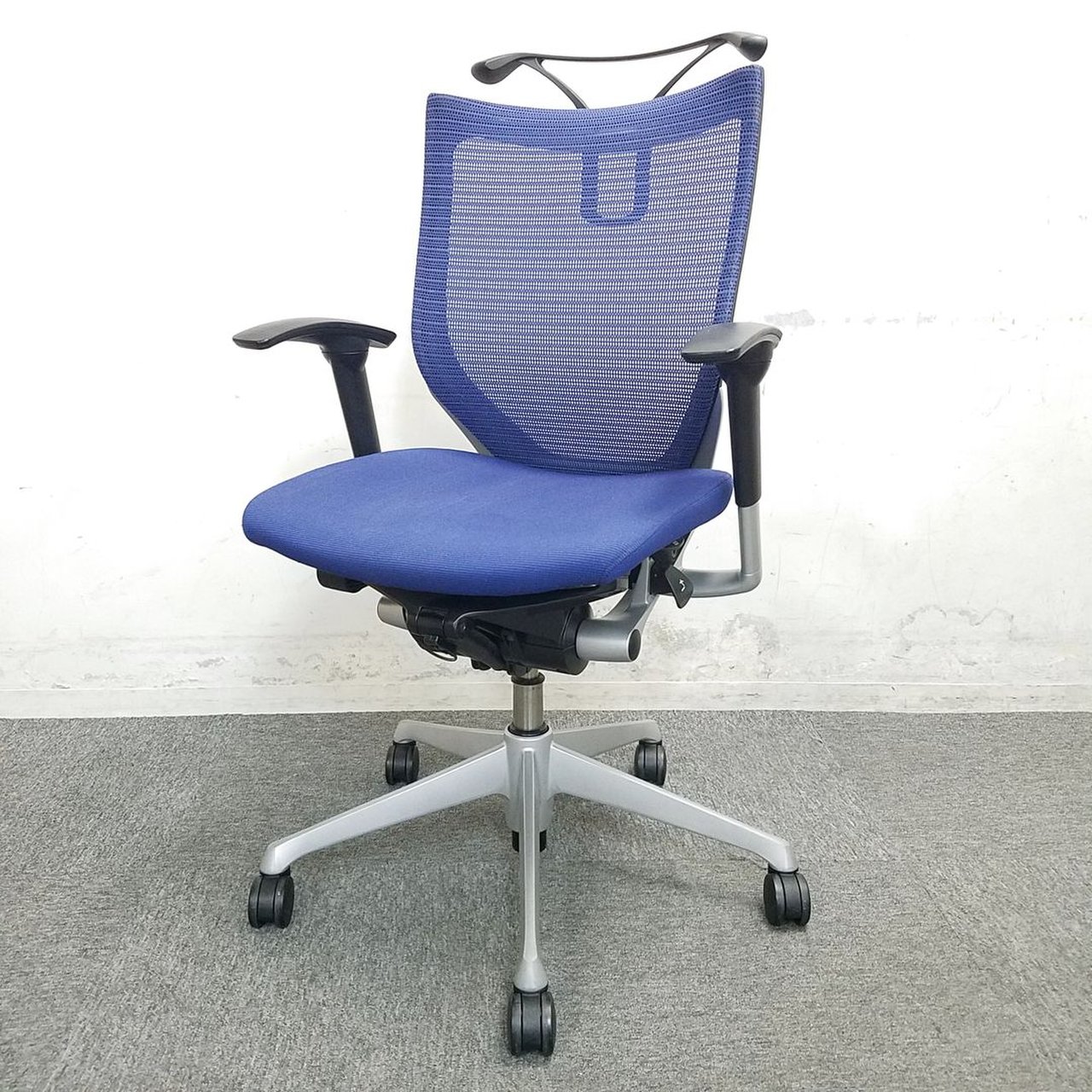 【座面が大人気!国産メッシュチェアの代表格!】■オカムラ(okamura)製 バロン(Baron)チェア ローバック 肘付き ■背面メッシュ ■固定肘 ■色:ダークブルー ■ハンガー付き