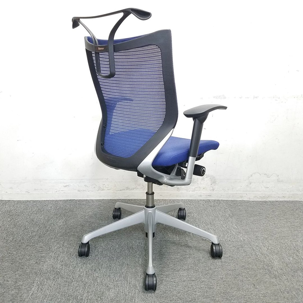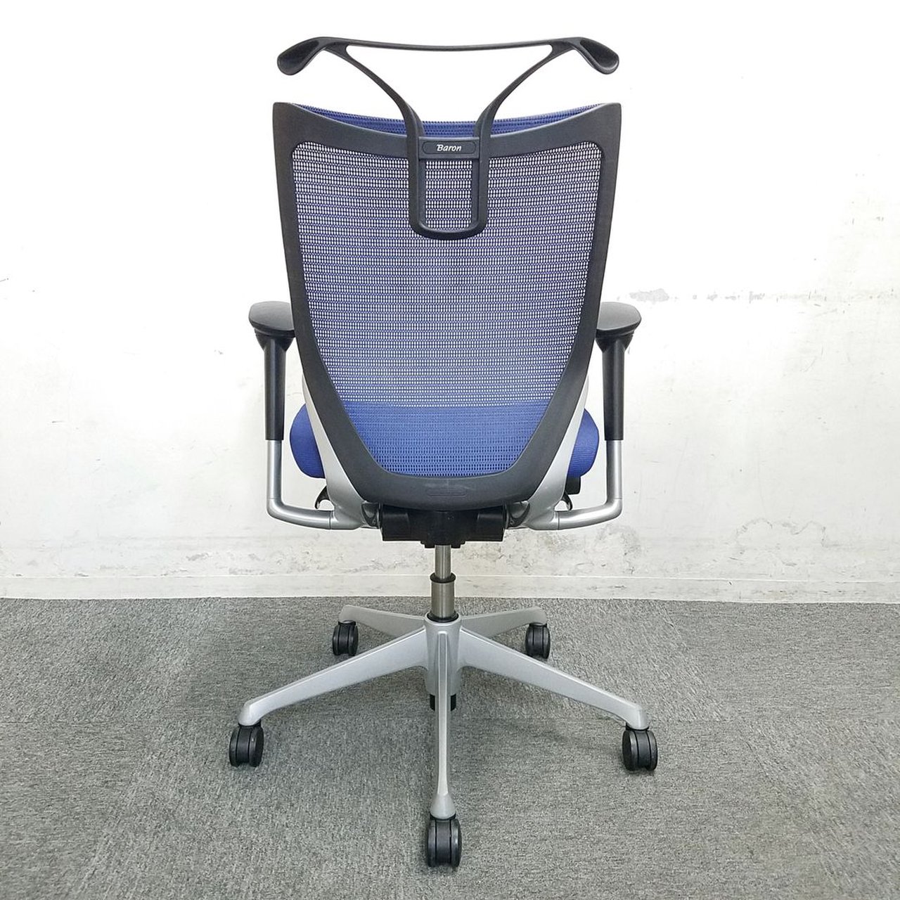 【定価約16万円】【長時間の着座でも疲れにくいサポート感!】■オカムラ(okamura)製 バロンチェア(Baron) 肘付き ローバック ■ブルー ■可動肘 ■メッシュ背面【ベストなポジションが得られる先進設計!】