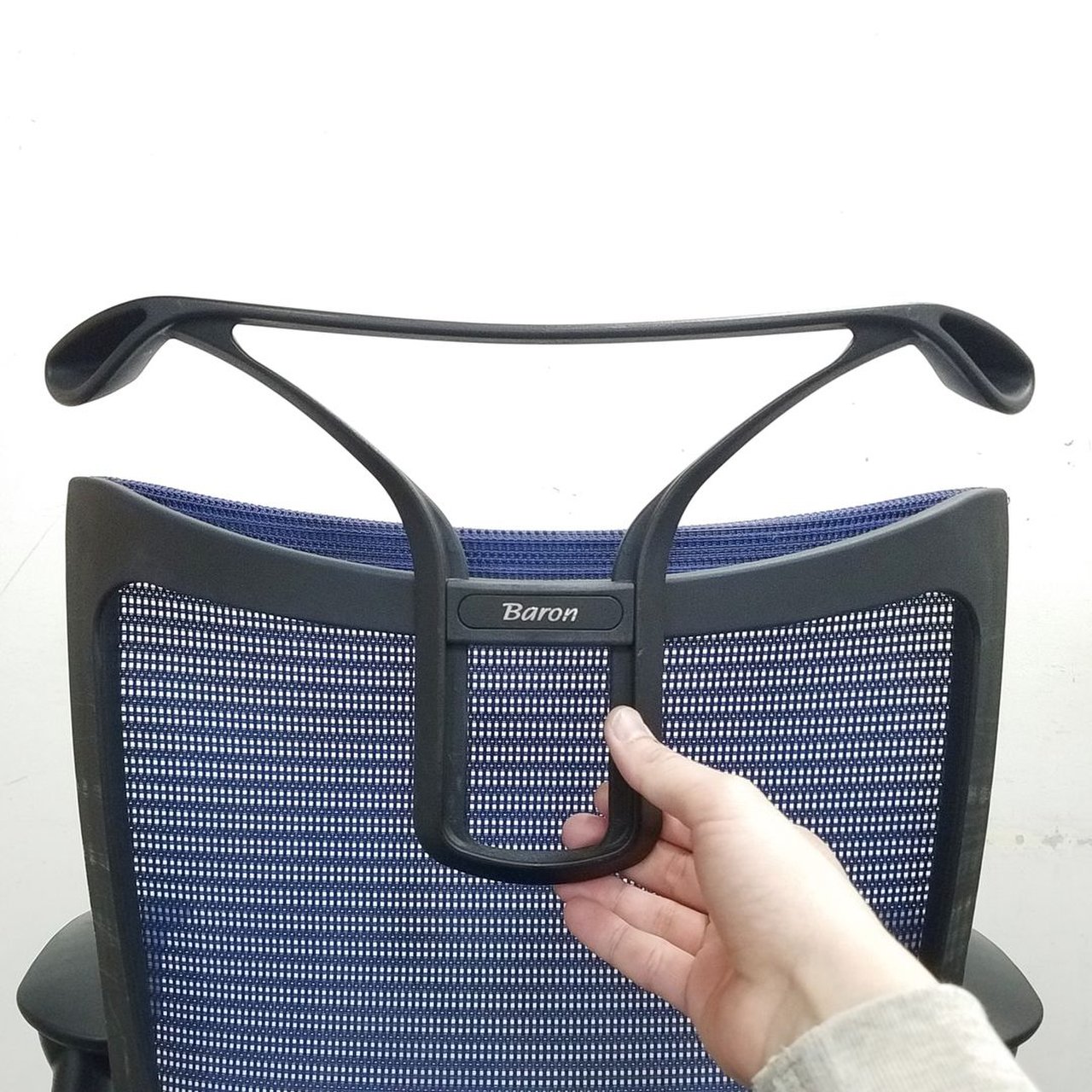 発売当時、既に人気を博していたオカムラの高級チェア、コンテッサから手元で座高調整ができるスマートオペレーション機能を取り除くなどしてリーズナブルにしたのがバロンです。その際に少しだけコンパクト化されました。そのことが、日本人の体格、日本のオフィス、家庭環境に適し、国内で多くのシェアを獲得する要因の一つになったのではないかと思います。