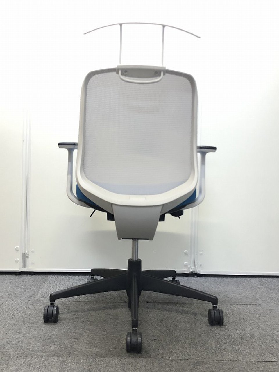 背もたれがメッシュのチェアは、構造上、外枠となるフレームが存在します。小さめのメッシュチェアは背中にフレームが当たったり、メッシュの弾性を十分に得ることができないので、一般にメッシュチェアは大型になりがちです。しかし、シロッコチェアは、フレームを横ではなく縦方向に厚くしたバーチカルフレームで強度を確保しており、 小さめのボディでありながらメッシュ面が広く作られています。
