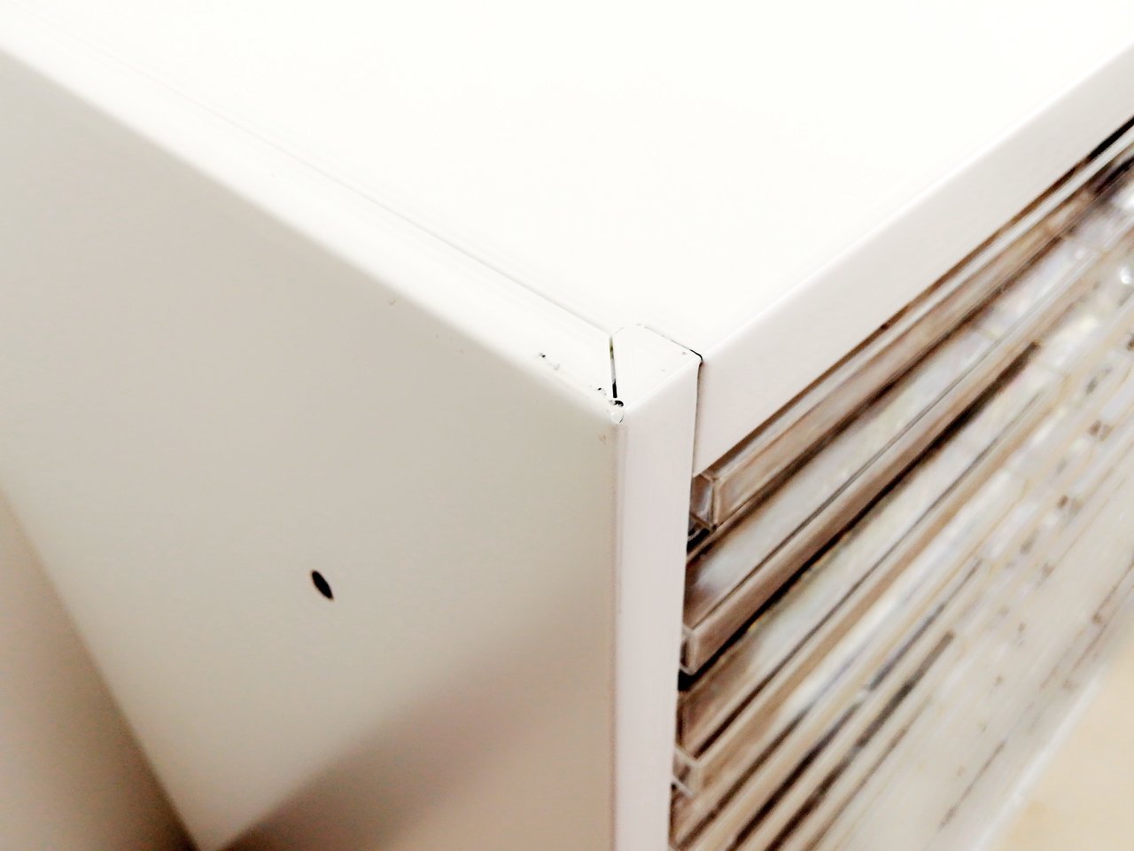 - かなり強い濃い黄ばみ・変色が商品全体にある。(例、天板、正面、背部、サイド部分にある。)