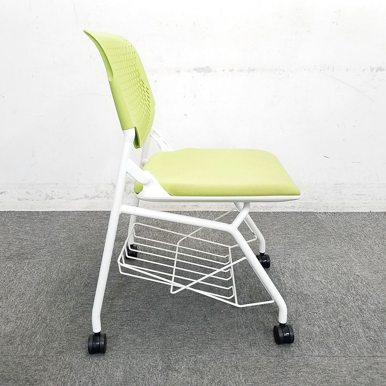 【T11】【T10】【商品入替のため、残り6脚限り】オカムラ製 ルナシリーズ ライムグリーン ホワイトフレーム 軽快なデザインが人気 ネスティングチェア!!