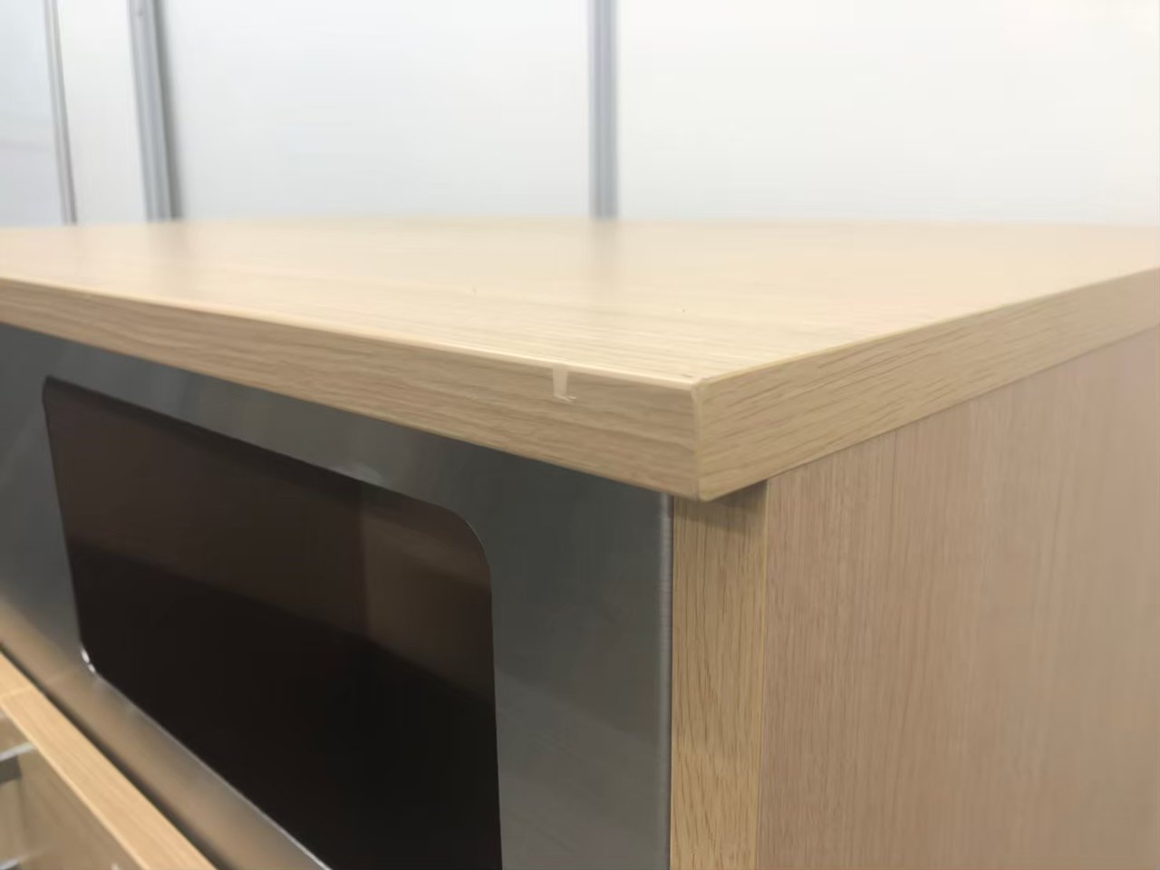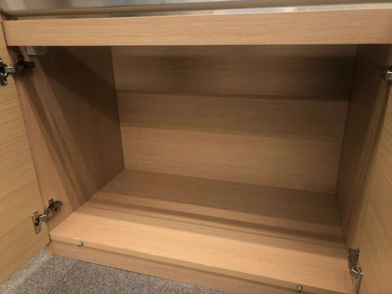 ナチュラル色のお洒落なキャビネットとなり、