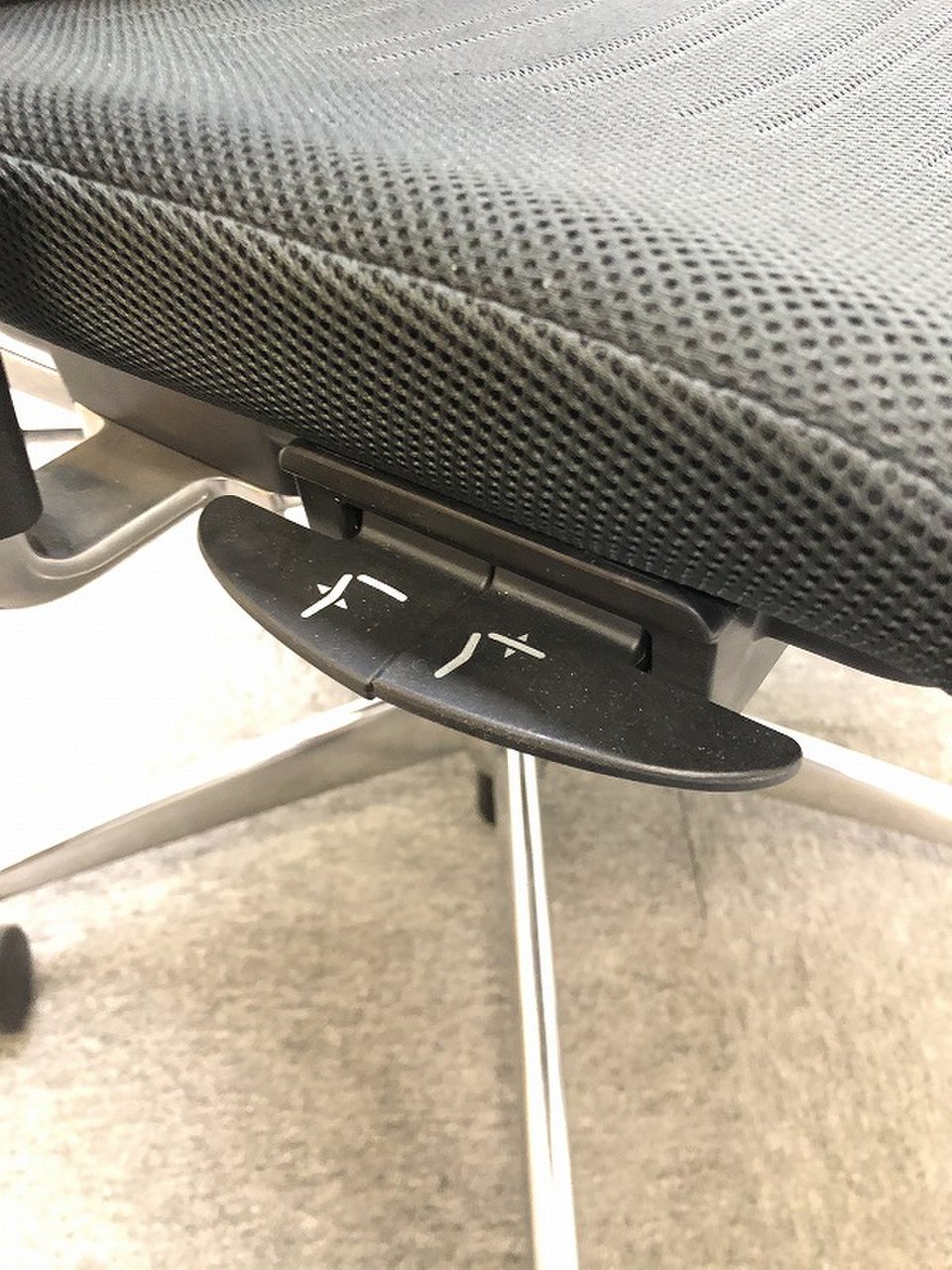 - 座る人の体格に合わせて、シート奥行きは前後54mm、高さ100mmの調整が可能です。また、調整レバーを座面シートの側面に設けることで、座ったままの姿勢で操作することができます。