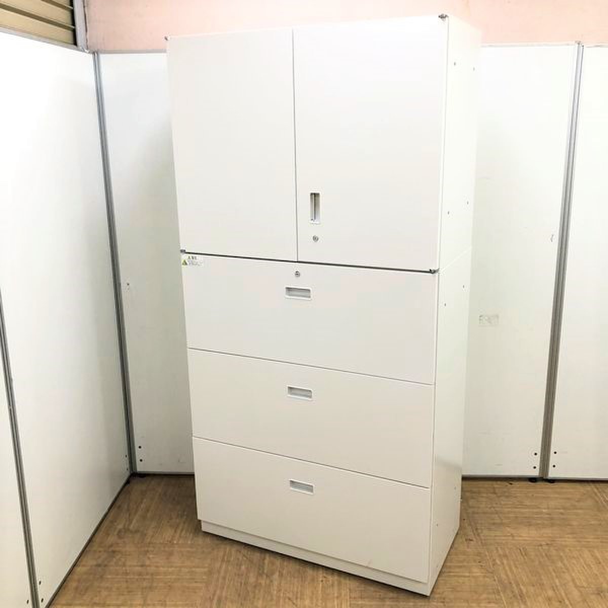 【使いやすい高さの書庫セット】H1800 両開+3段ラテラル書庫の組み合わせ- 名古屋本店