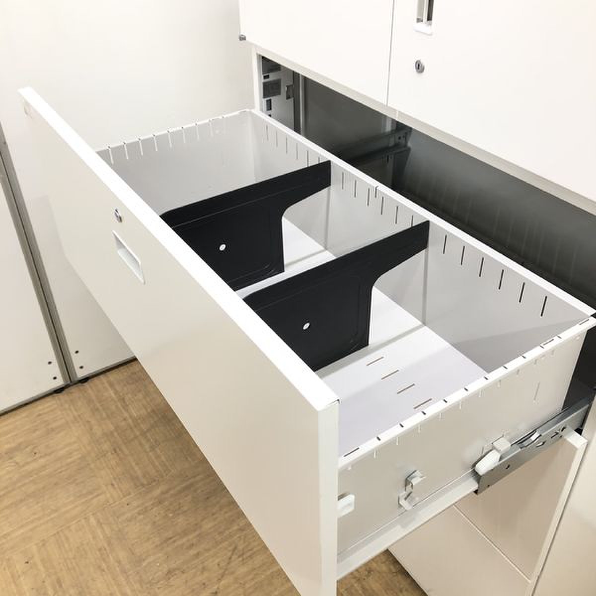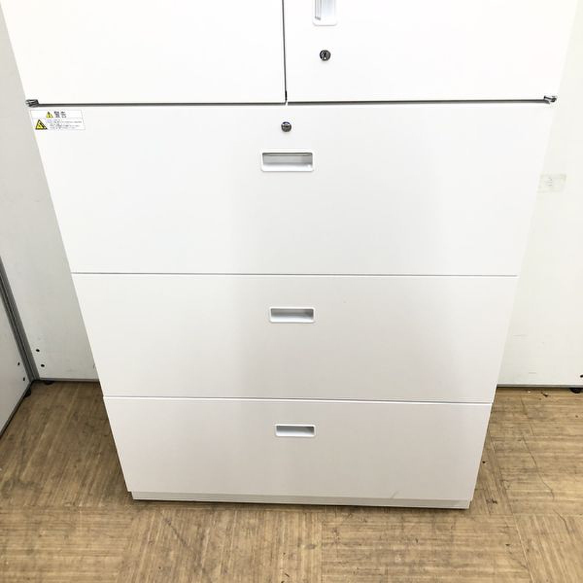 3段ラテラル書庫は、大きな引出タイプの書庫で上から収納する書庫で
