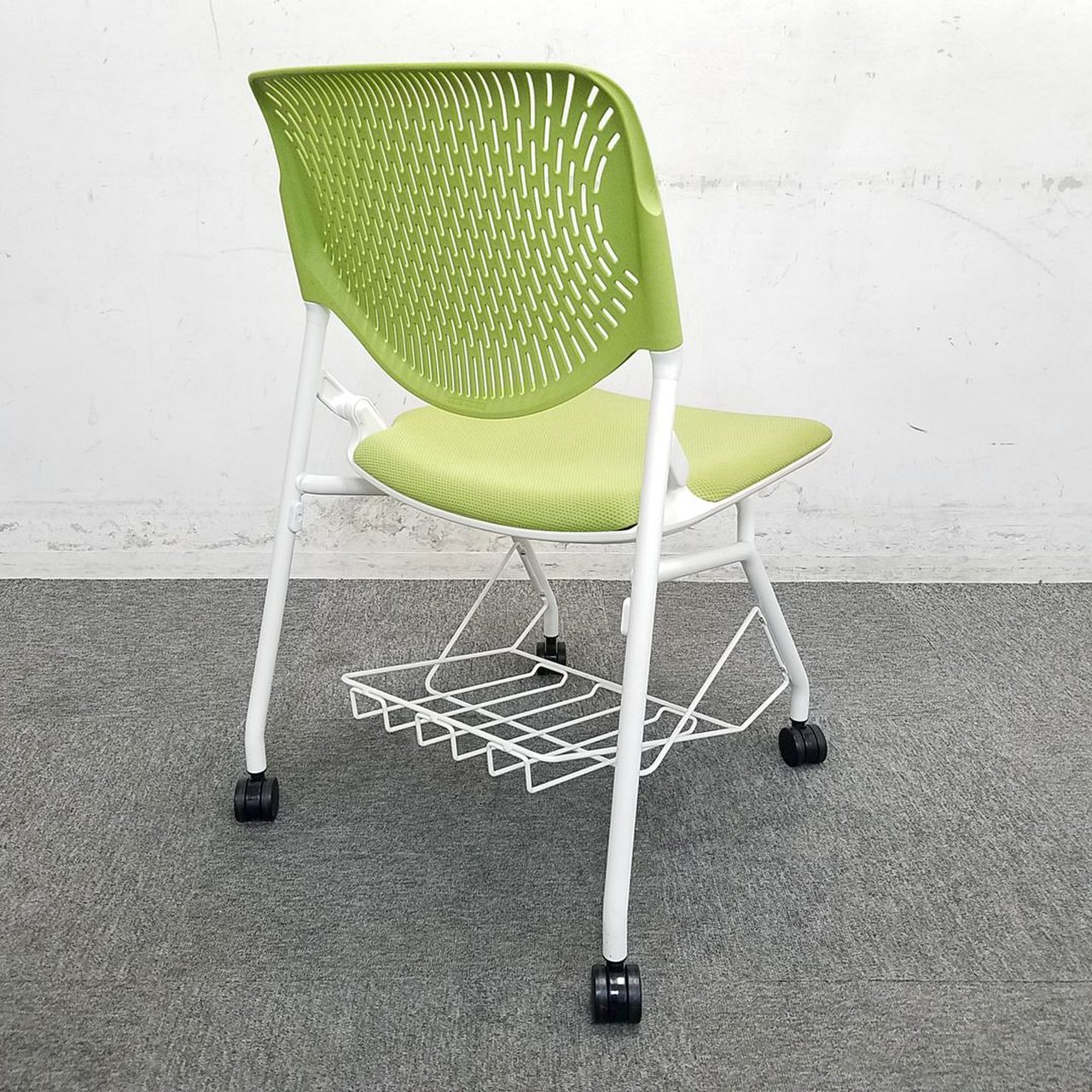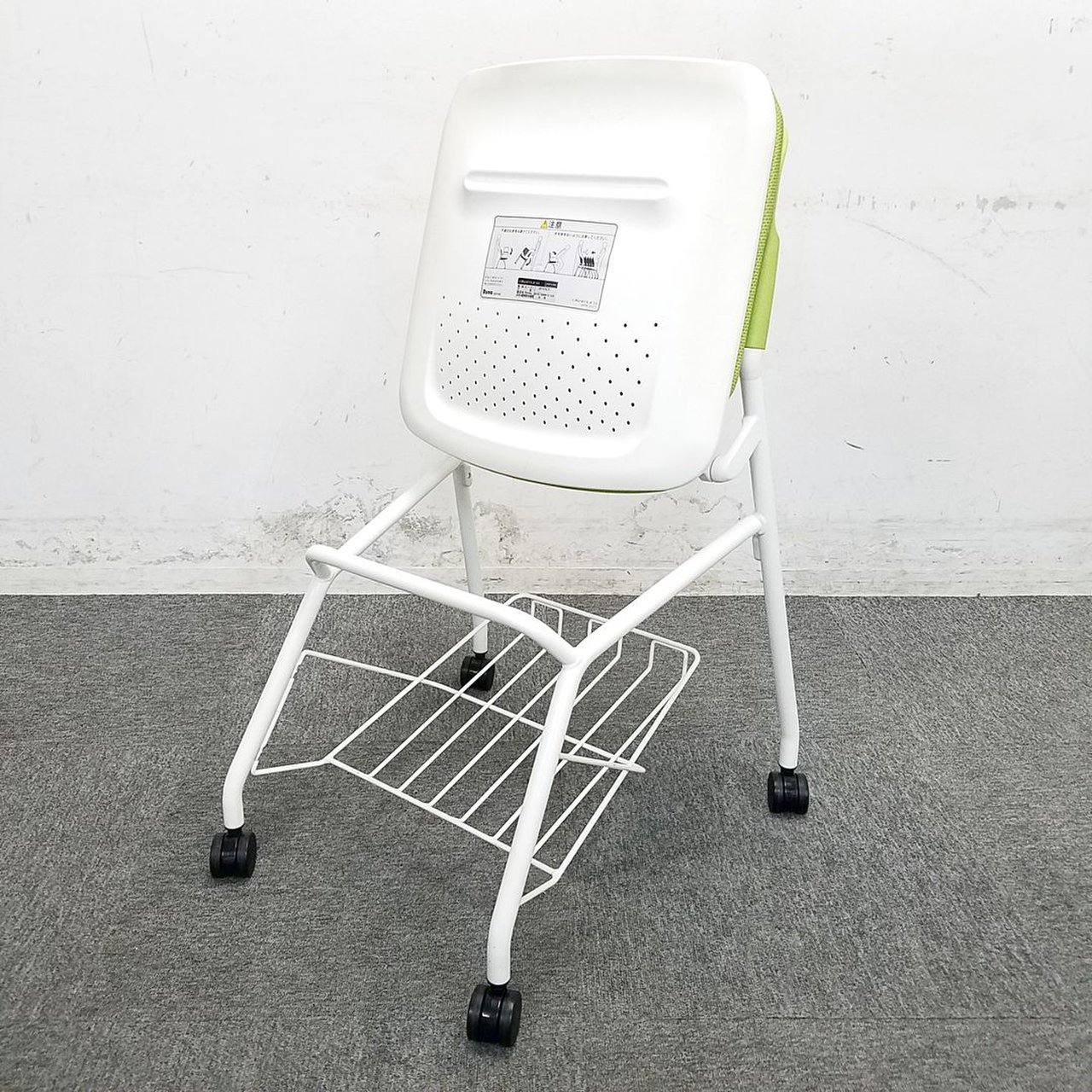 【T11】【T10】【商品入替のため、残り6脚限り】オカムラ製 ルナシリーズ ライムグリーン ホワイトフレーム 軽快なデザインが人気 ネスティングチェア!!