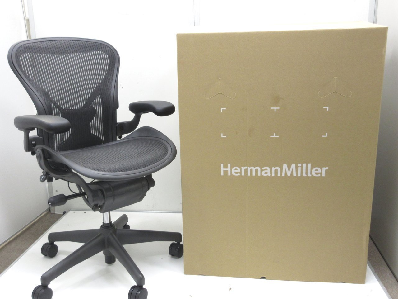 【新品買うのはモッタイナイ!】■アーロンチェア Bサイズ・フル装備【未使用品】■ポスチャーフィット 可動肘 グラファイトカラーベース クラシックペリクル新古