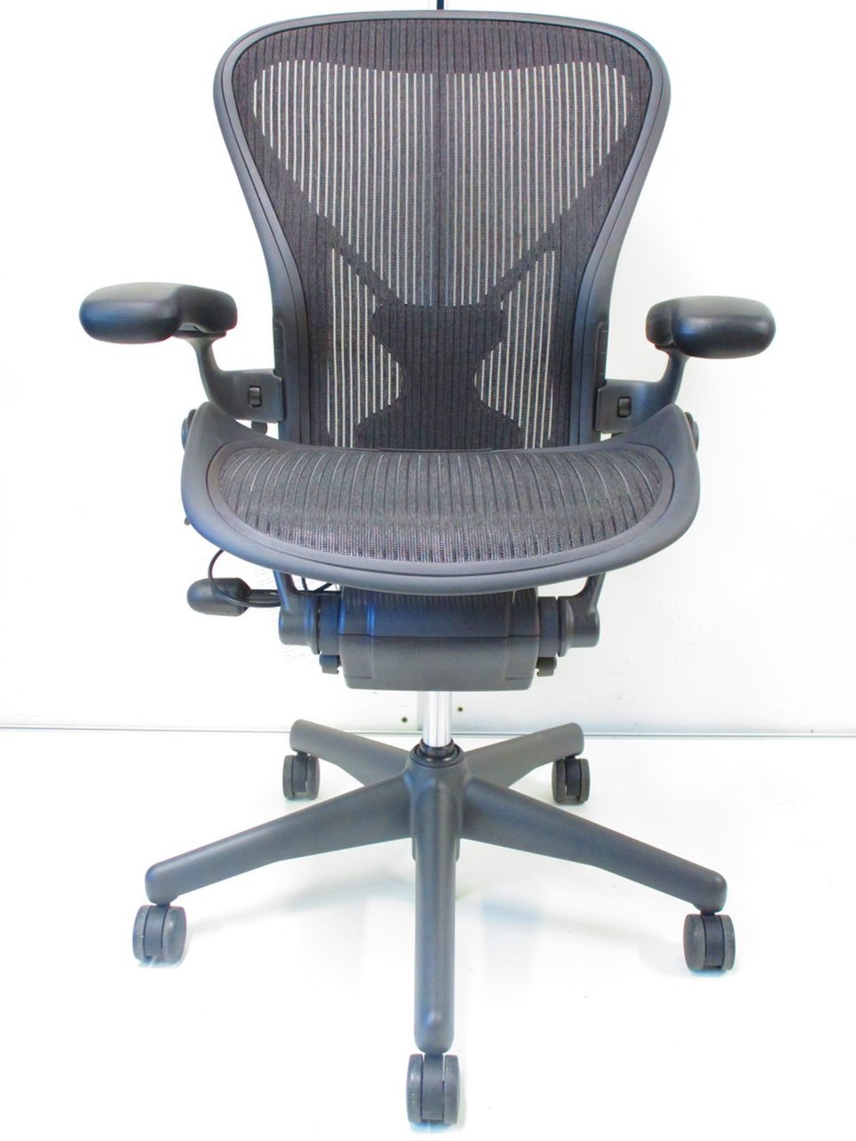 【スタイリッシュなデザインに快適な座り心地!】■ハーマンミラー アーロンチェア Bサイズ 固定肘 ランバーサポート無 ※キズあり・劣化ありのためお安く!【A01029474】