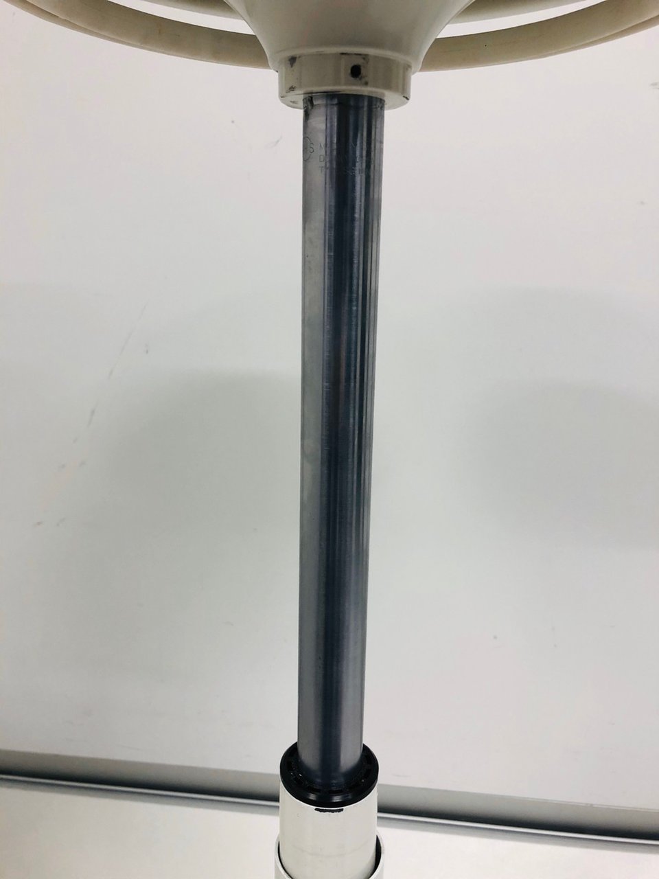 不具合:脚部の部分のピンが不足しており、パイプが下がったままの状態でございます。