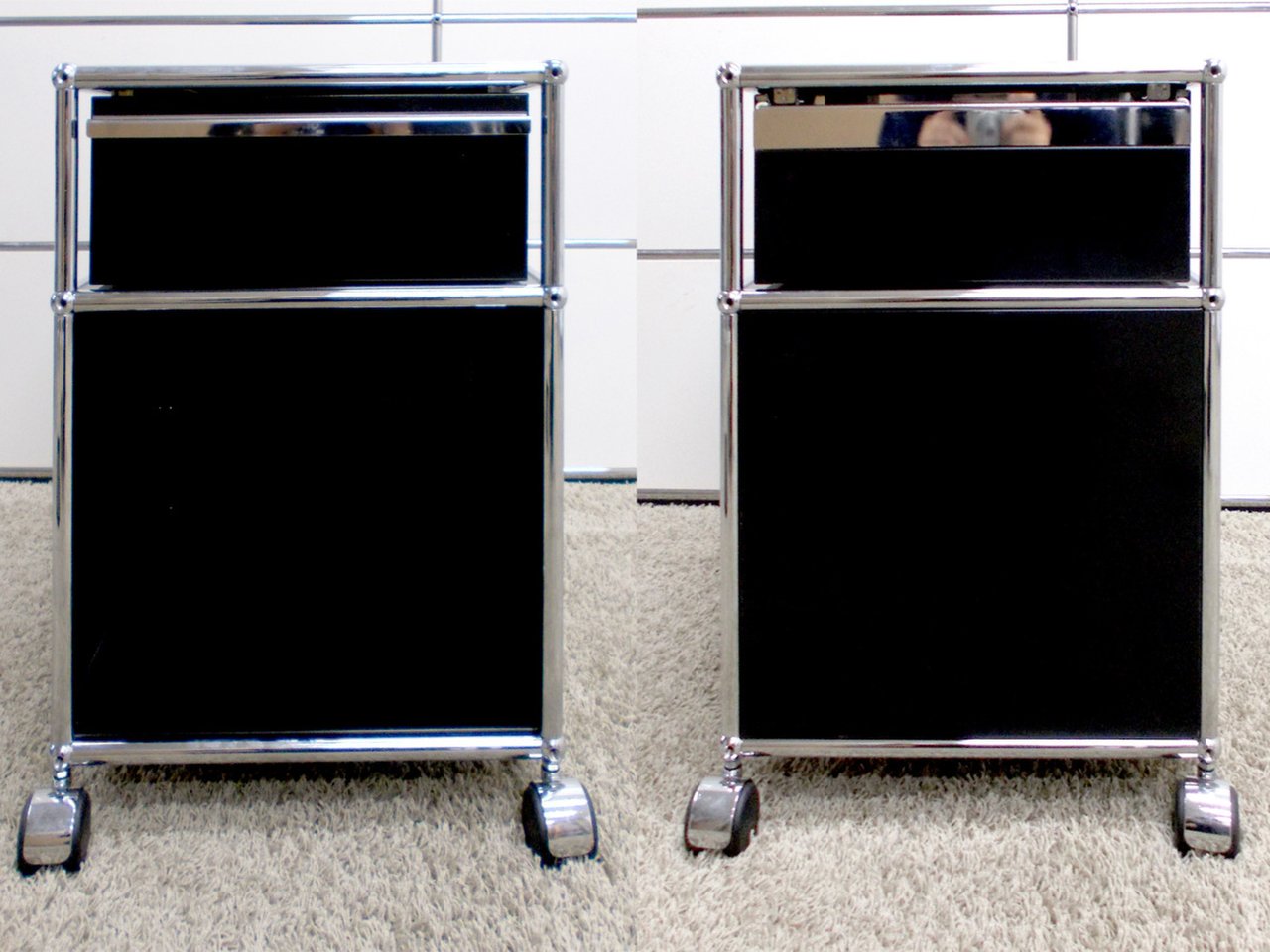 システムキャビネットメーカー『USMハラー』のデスクインワゴンです。 デスクワゴンとしてはもちろん、ベッドサイドのナイトテーブルやキッチン周りの収納キャビネットとしてもお使いいただけます。