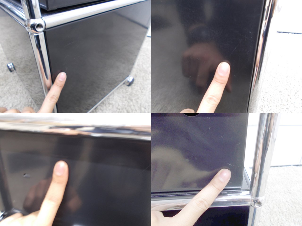 - 目立つ箇所あり傷・凹みが多数、深い傷・凹みが一部ある。(例、天板、正面、背後、サイド部分にある。)