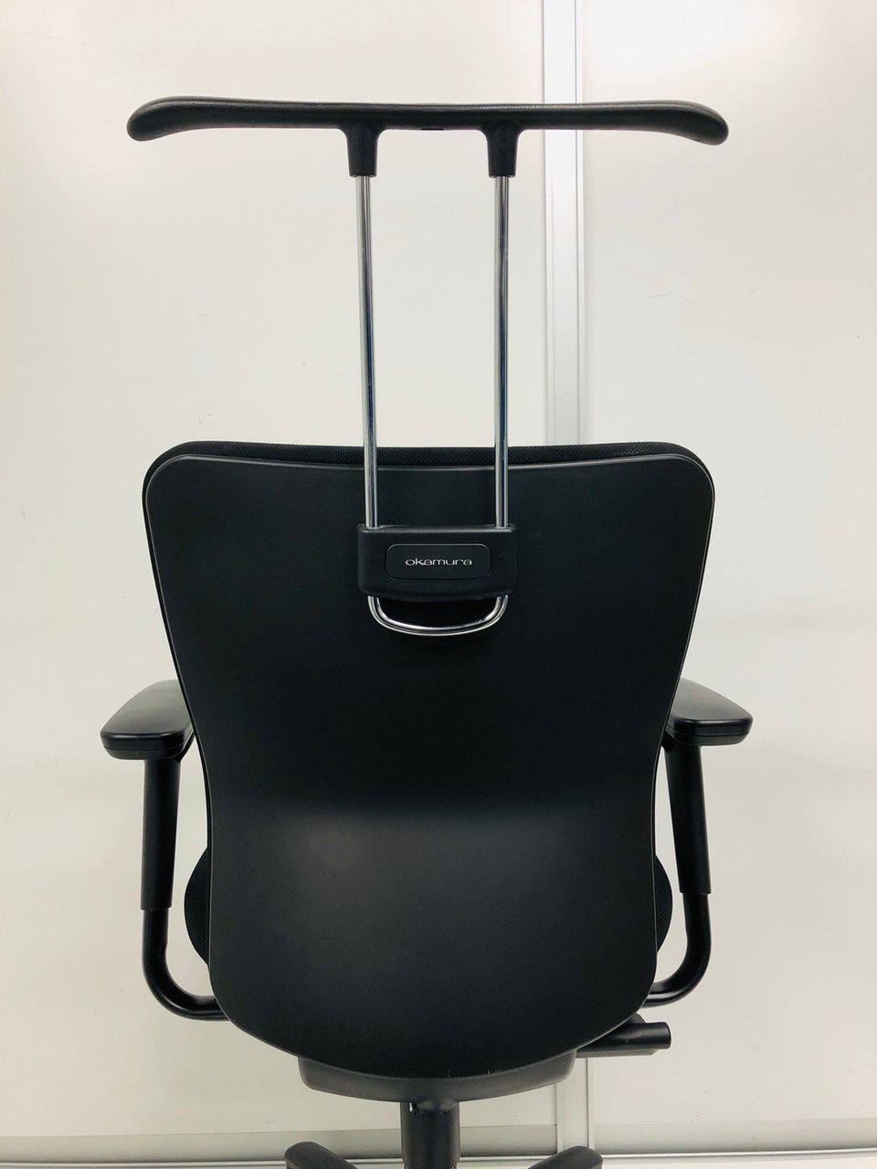 【肘付&ハンガー付の万能ワークチェア】 オカムラ「Carrozza」が入荷。固定肘とコートハンガーで使い勝手◎。ブラックボディの落ち着いたデザインでオフィスでも自宅でも使いやすい人気モデルです。