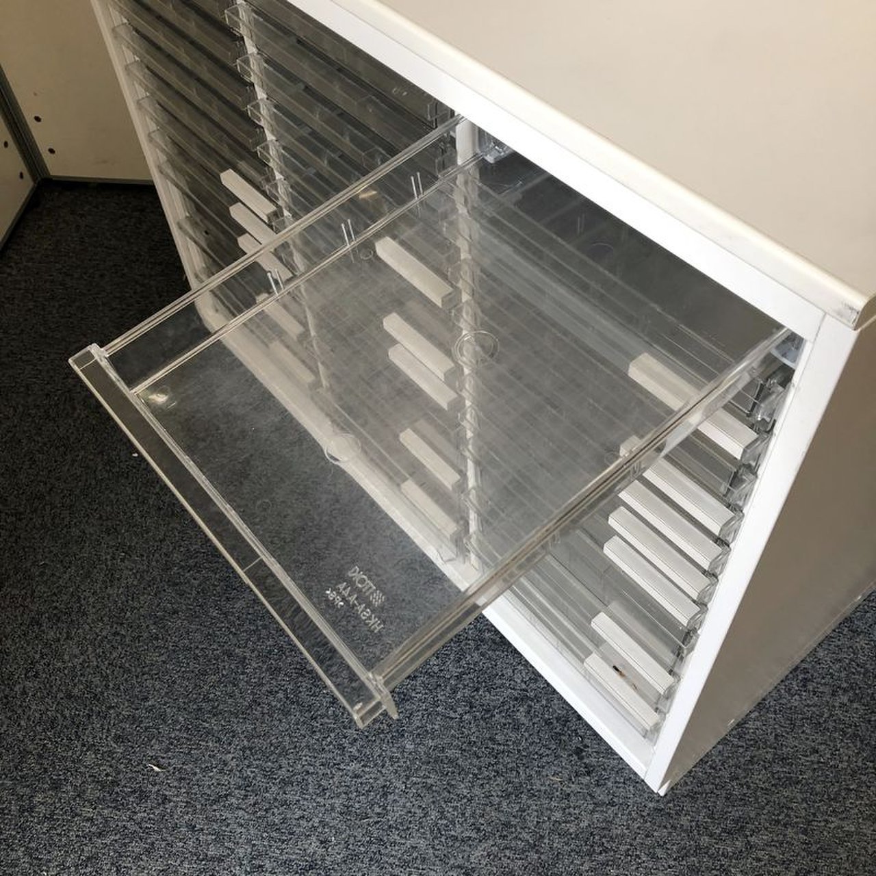【西】【イトーキ製】【クリスタルトレー】【収納】【なんと定価14万!!中古希少美品!】即完売するレア品です‼浅型1段、深型10段!【福岡オフィス家具】【福岡中古家具】【中古事務什器】【中古チェア】【中古椅子】※全在庫品から平均的な商品を選定して撮影しております