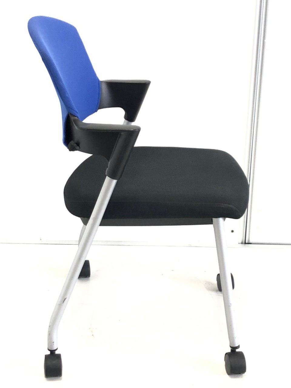 【シンプルスマートなスタッキングチェア!分厚いクッションで長時間でも快適な座り心地!】■コクヨ(KOKUYO)製 プロッティ (Protty) 肘付 ミーテイングチェア スタッキングチェア ■固定肘 ■ブルー×ブラック ■背面ヌードタイプ