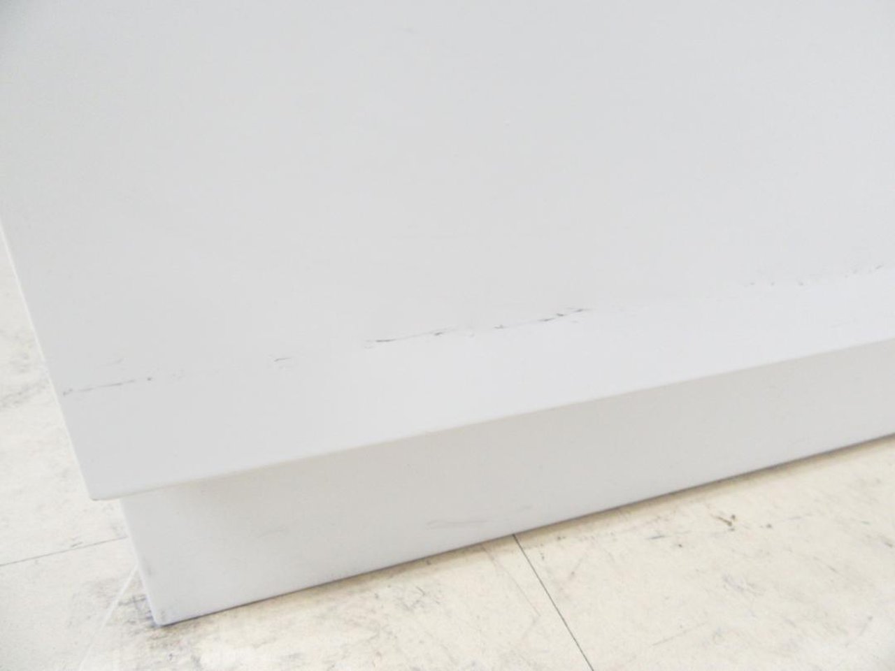 - 目立つ箇所複数あり深い傷・凹みが商品全体にある。(例、天板、正面、背部、サイド部分にある。)